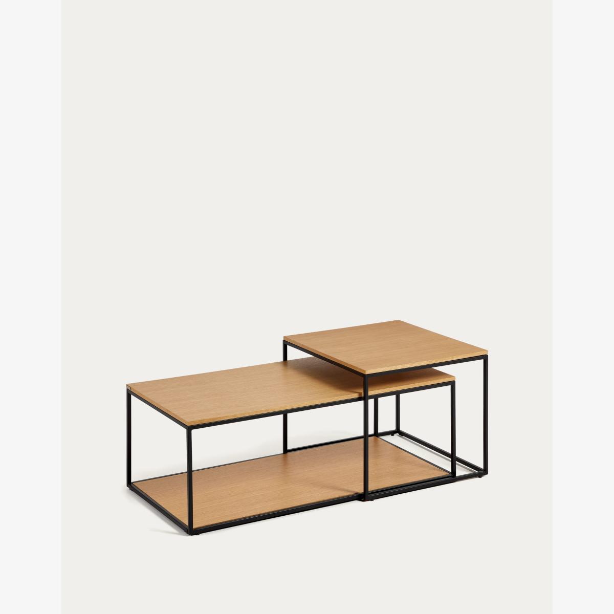 Yoana set of 2 nesting coffee tables with oak wood veneer & black painted metal structure
