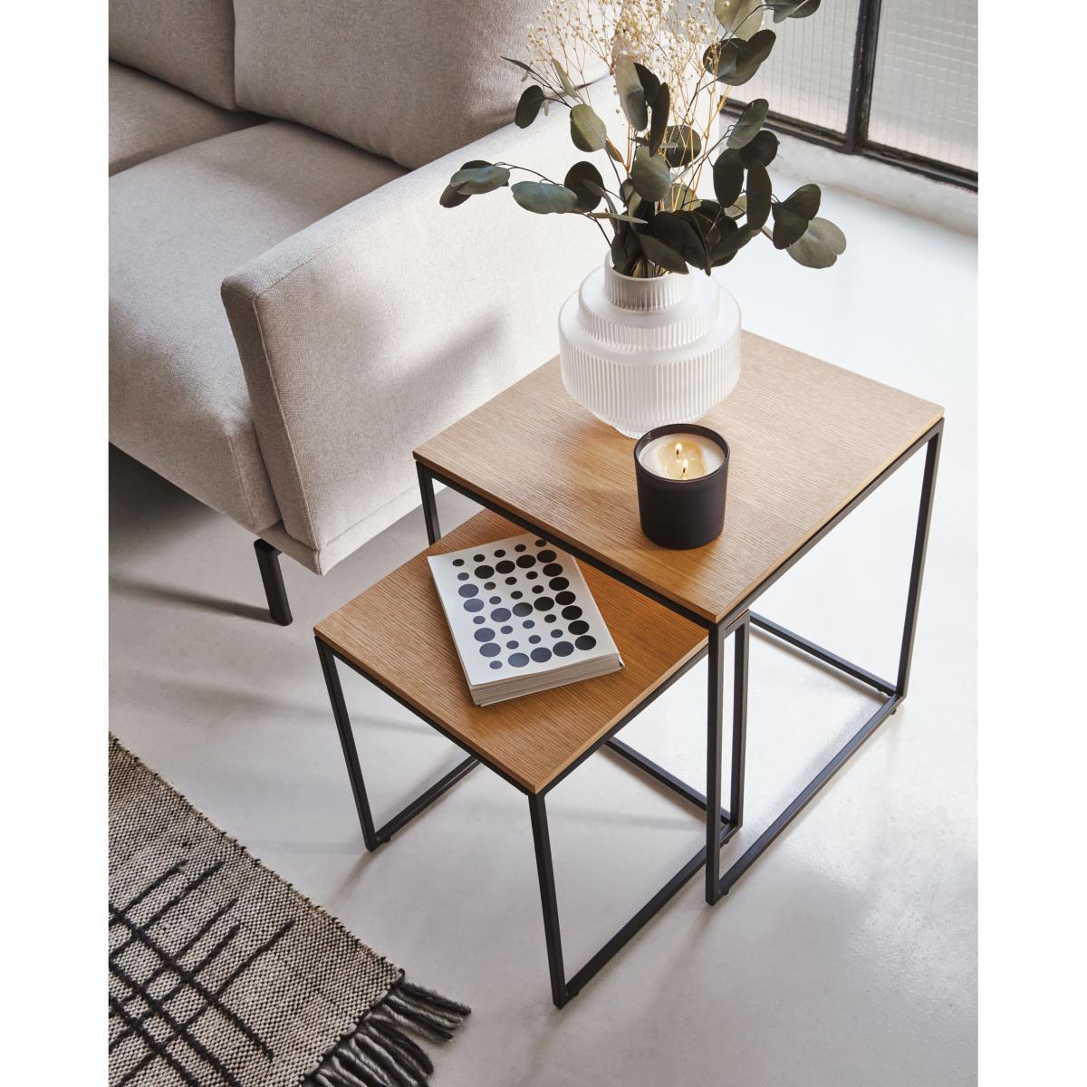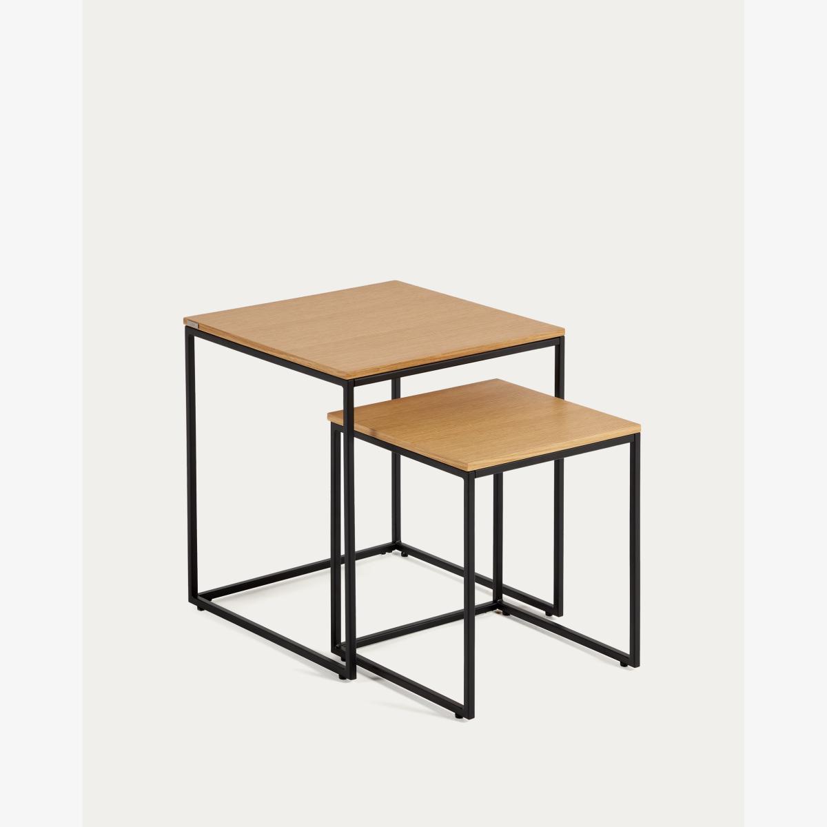 Yoana set of 2 nesting side tables with oak wood veneer and black painted metal structure