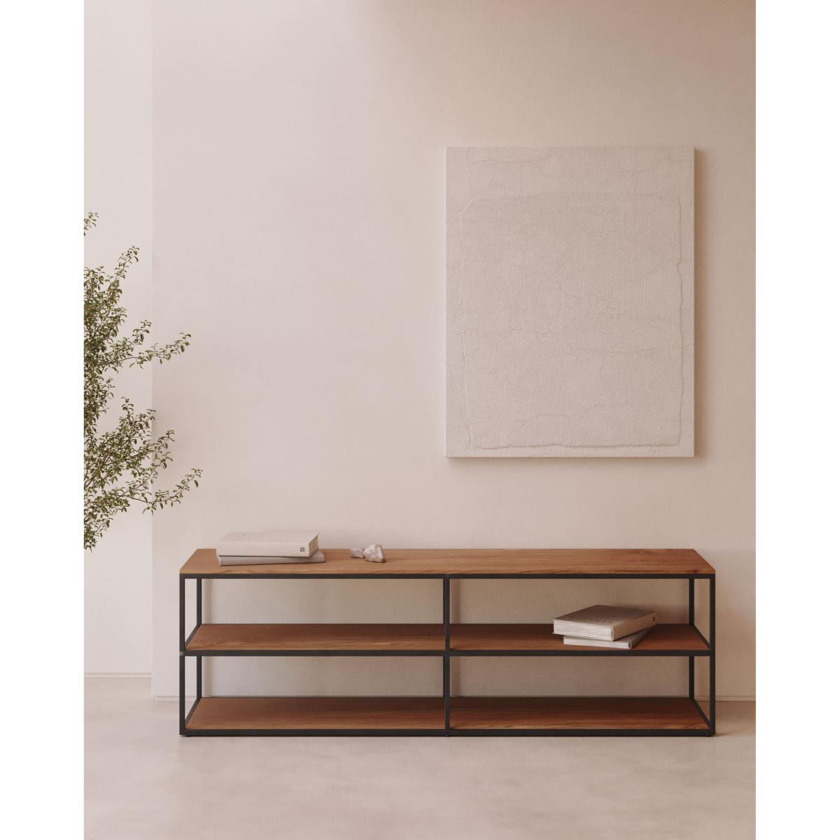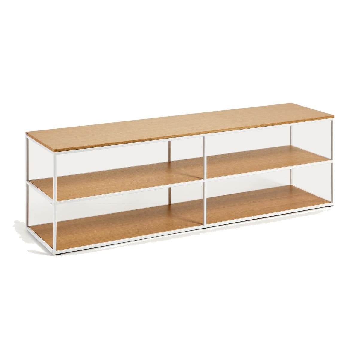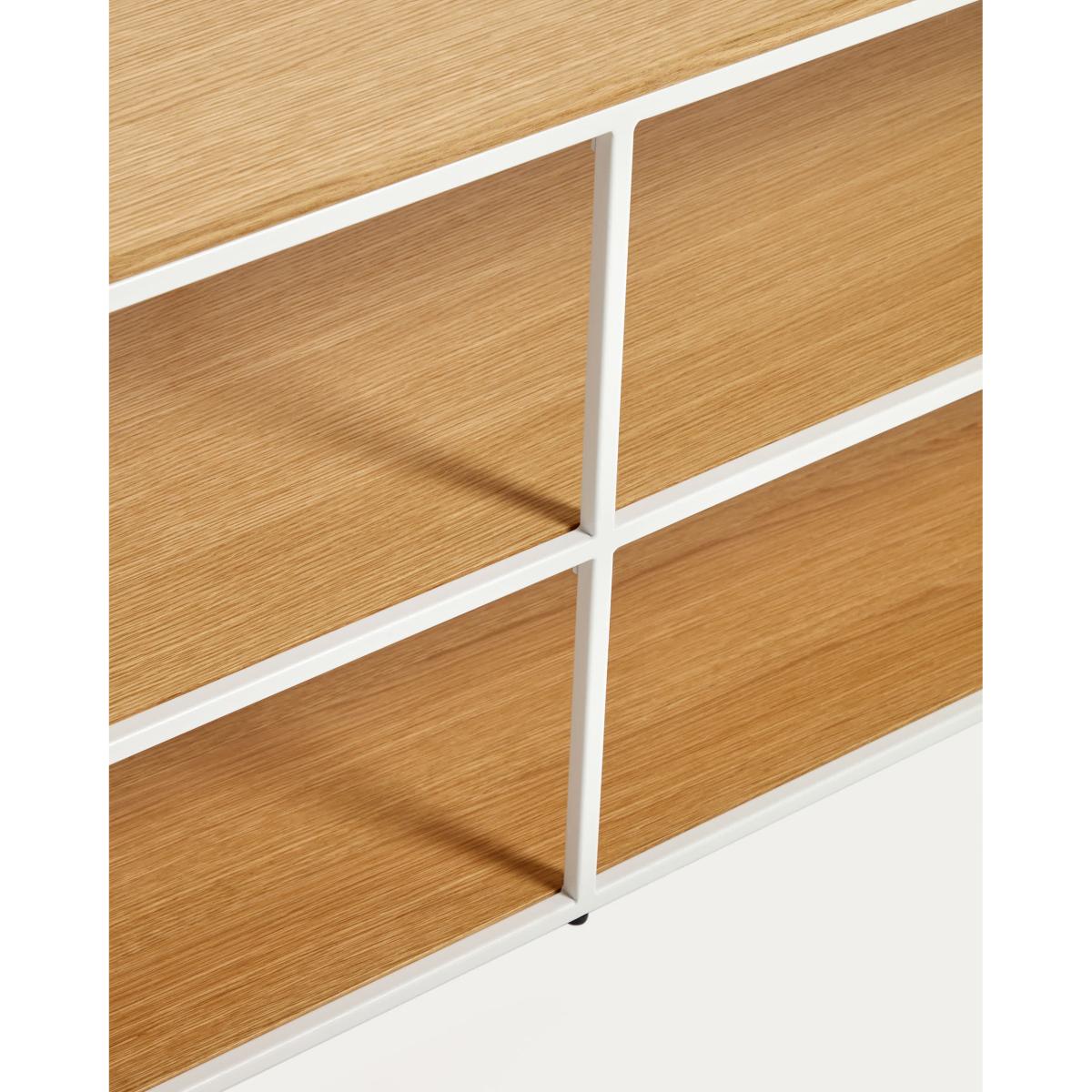 Yoana TV stand with oak veneer and painted white metal structure, 160 x 40 cm