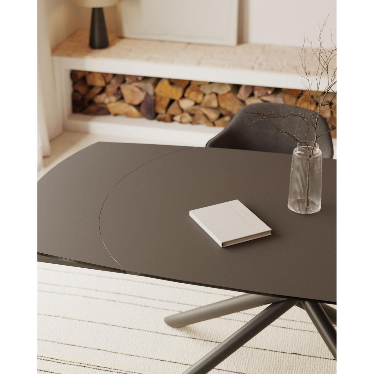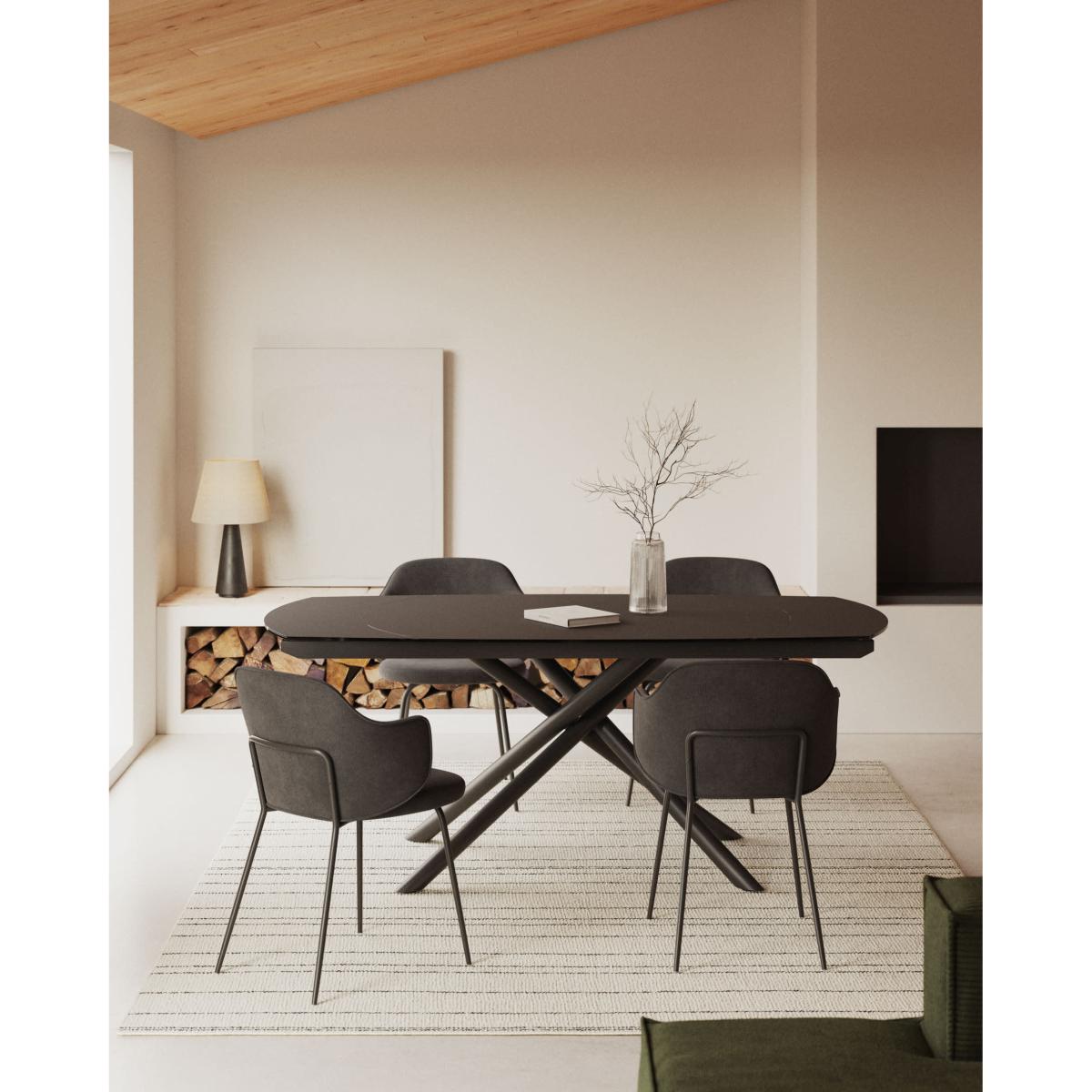 I’m a fan of this extendable glass table with black steel legs because its clean lines and slim frame keep a room feeling open, even when you’ve pulled out the extra leaves. The tinted glass top adds subtle depth without overwhelming a scheme, so it’s perfect for contemporary, industrial or Scandinavian-inspired dining areas. For styling, keep tabletop accessories minimal - a simple ceramic vase or a low-profile fruit bowl works well - and hang a single pendant light just above the centre to highlight the glass surface. Pair it with slender chairs in mixed materials (leather or lightly coloured fabric) and place it on a low-pile rug to define your dining zone without adding bulk.