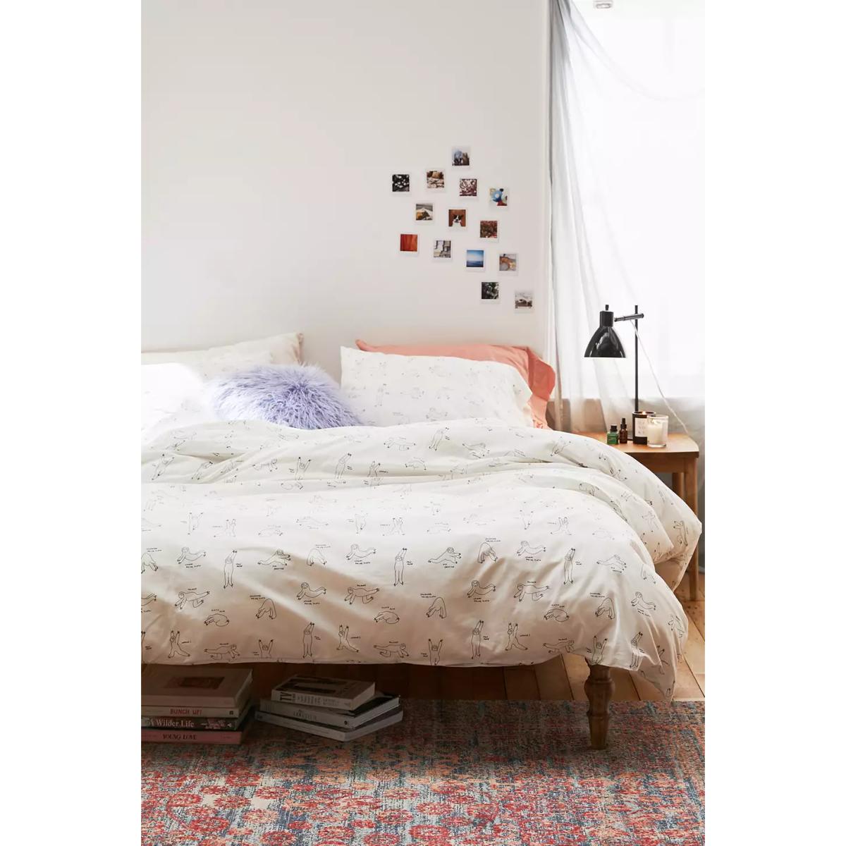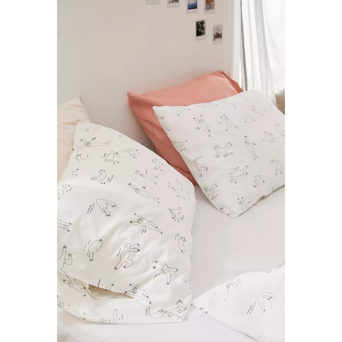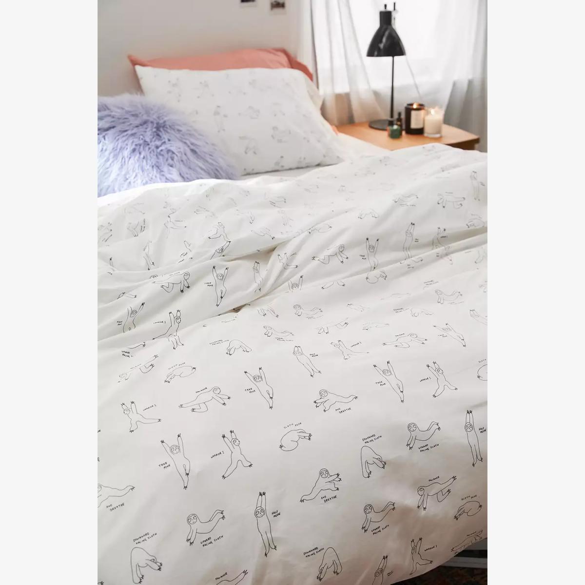 Super-soft duvet set topped with an all-over yoga sloth design, a cute choice for your bed. Pair with any of our other throws and cushions (not included) to create your ultimate happy place. **About Better Cotton** \- By choosing our cotton products, you’re supporting our investment in Better Cotton’s mission \- This product is sourced via a system of mass balance and therefore may not contain Better Cotton \- Bettercotton.org/massbalance **Content + Care** \- 100% Cotton \- Machine wash **Size + Fit** \- Single (includes 1 pillowcase): 135cm (W) x 200cm (H) \- Double (includes 2 pillowcases): 200cm (W) x 200cm (H) \- King (includes 2 pillowcases): 230cm (W) x 220cm (H) \- Pillowcase: 75cm x 50cm