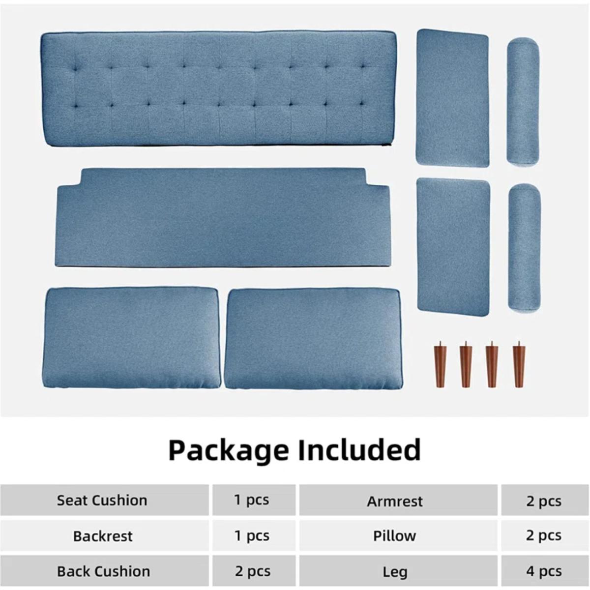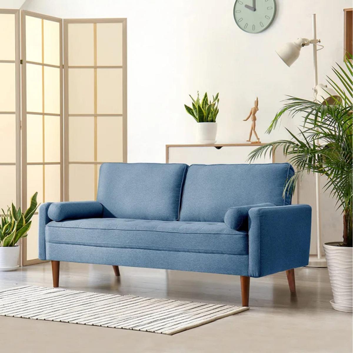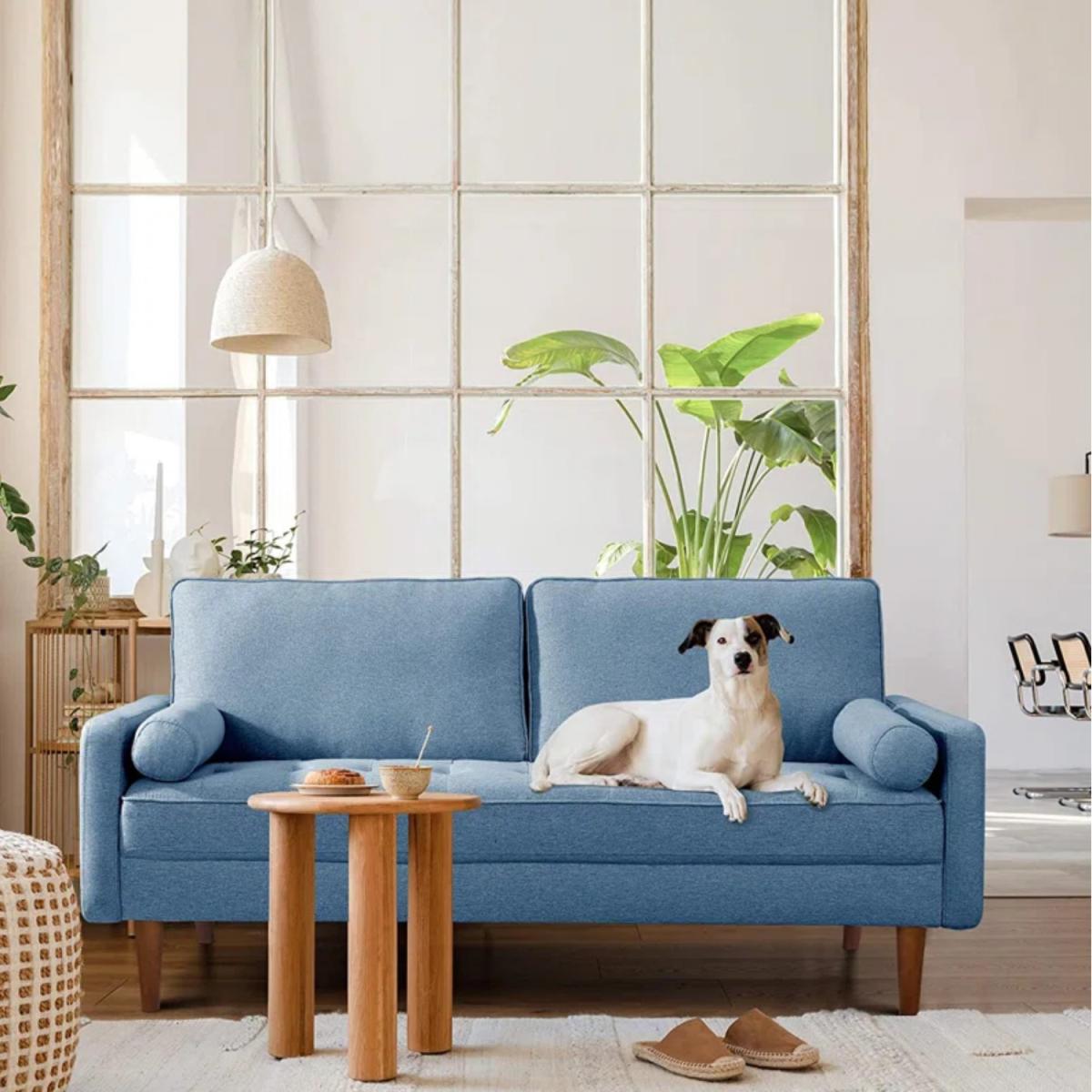 Yohood 68" Linen Square Arm Tufted Upholstered 3-Seater Sofa Loveseat - Blue