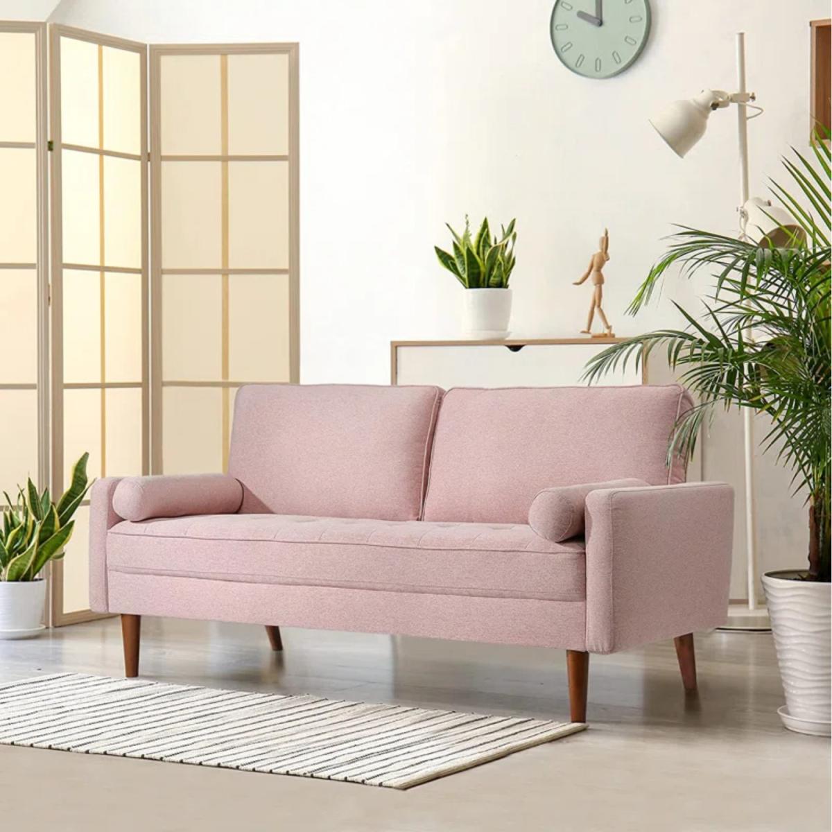 Yohood 68" Linen Square Arm Tufted Upholstered 3-Seater Sofa Loveseat - Pink