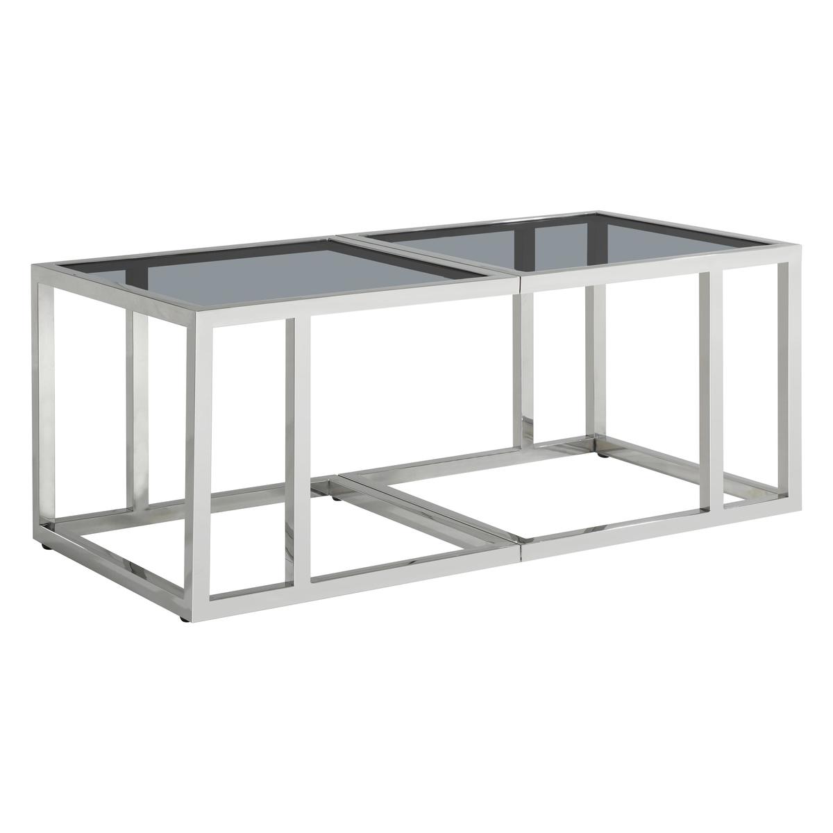 Sleek and modern, the Yoko range of occasional furniture features stylish tinted glass tops on polished stainless steel bases. But bold good looks aren’t the only reason to admire Yoko. The coffee table is actually composed of two smaller tables that fit together – simply move them apart whenever you need an extra end table or two. This multi-functional range also includes a lamp table which, like the coffee table, showcases Yoko’s striking signature cantilever-inspired base. Made for contemporary living, the great value Yoko coffee table combines multi-functional design with sleek modern materials. The clean straight lines and powerful geometric angles of the polished stainless steel cantilever-inspired base teams perfectly with the tinted glass top, a practical easy clean choice for the modern family. But there’s more to this table than meets the eye. It’s actually composed of two smaller tables pushed together – simply separate the two and use them as lamp or end tables whenever the occasion arises. The Yoko coffee table is part of the Yoko range of occasional furniture which also includes the Yoko lamp table.