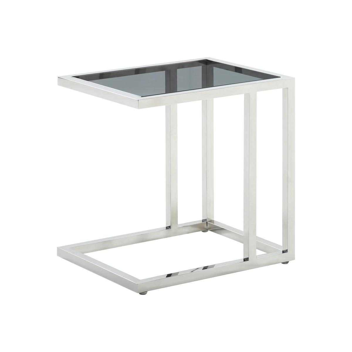 With its light- reflecting glass top, the contemporary Yoko lamp table is the perfect piece for any corner of your modern home. Contemporary in feel, the cantilever- style base has strong clean lines and powerful angles, accentuated by the polished stainless steel finish. The tinted glass top is strong, easy to clean and a great choice for families. The Yoko lamp table is part of the Yoko range of occasional furniture. It pairs perfectly with the Yoko coffee table, an ingeniously- designed occasional table that actually divides into two end tables. Great modern style at a great value price.