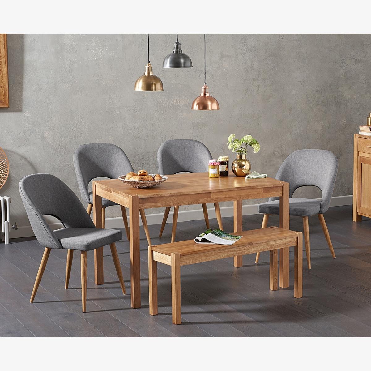 York 120cm Solid Oak Dining Table With 4 Grey Hudson Fabric Chairs And 1 York Bench