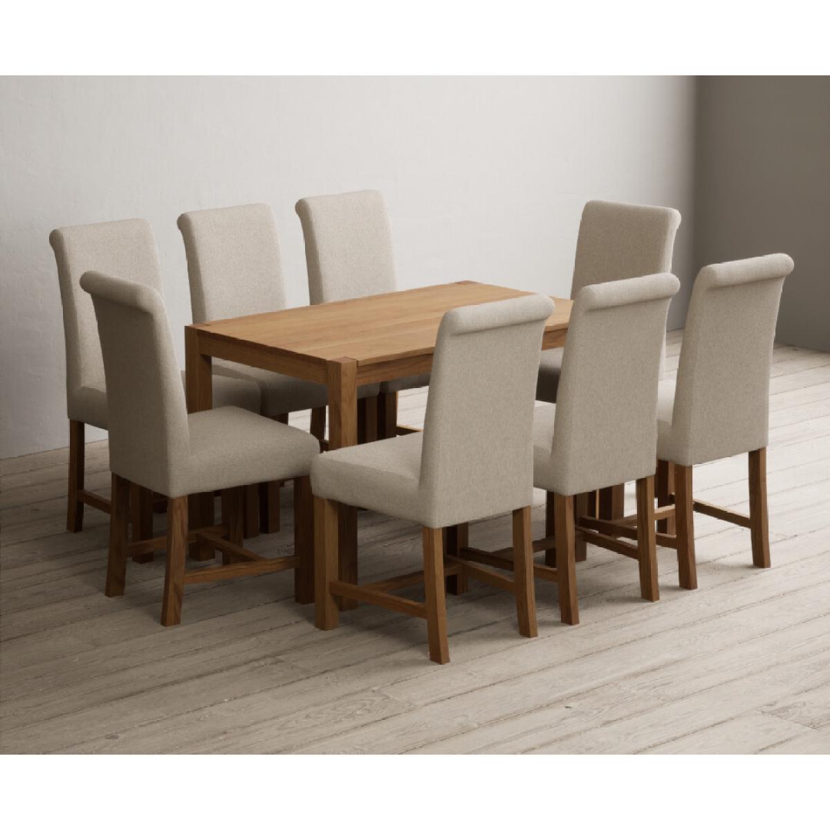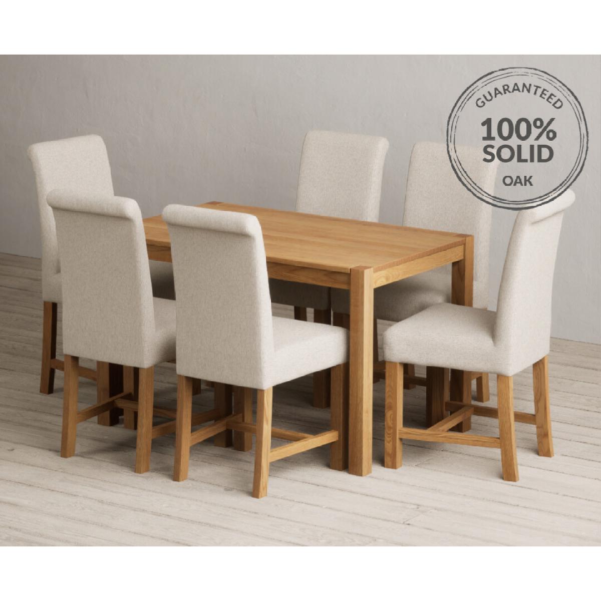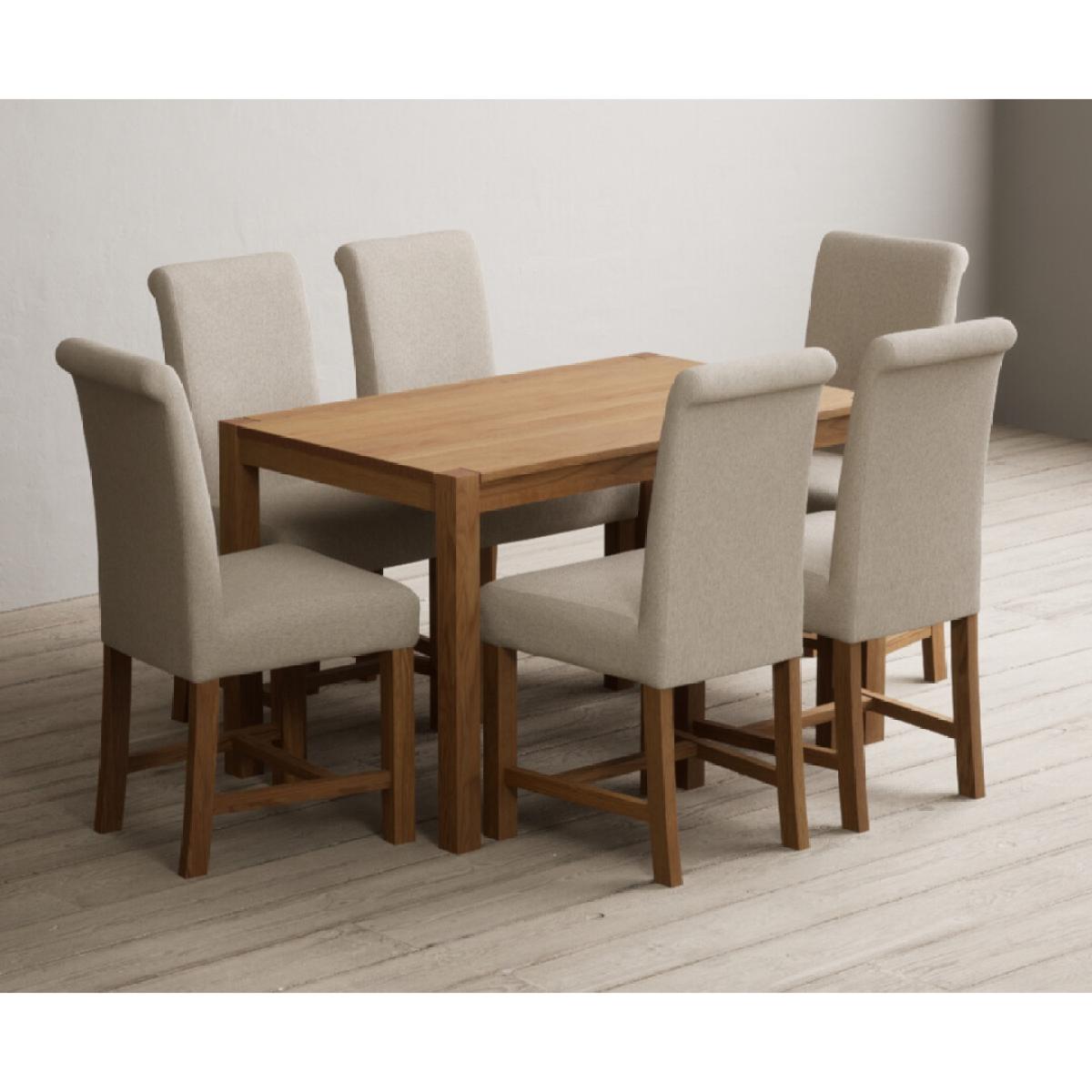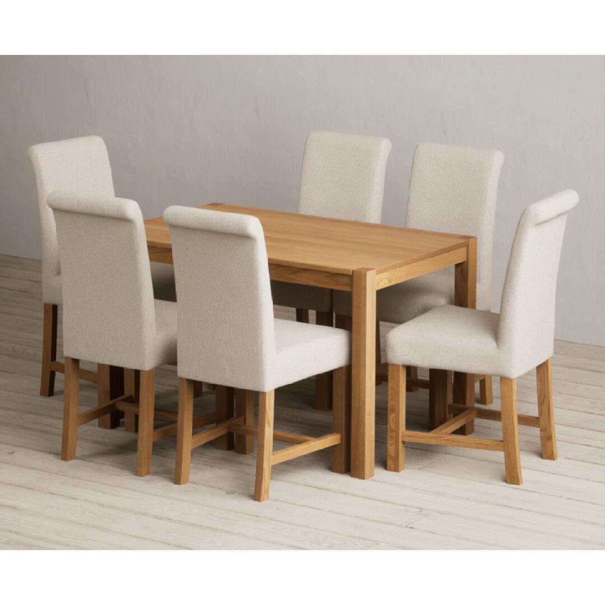 I love the York 120cm solid oak dining table for its clean, timeless look and sturdy construction, making it a versatile centrepiece for various interiors. It works particularly well in both modern minimalist spaces and cosy, rustic settings thanks to its natural oak finish. To style it effectively, consider pairing it with neutral-toned tableware and a subtle centrepiece like a simple vase or greenery to highlight its natural grain. The chairs, with their light upholstery, add a fresh contrast and brighten up the space, especially in open-plan kitchens or dining rooms aiming for a relaxed, inviting atmosphere. Practical tips include using placemats or runners to protect the surface and mixing in some colourful or patterned cushions on the chairs for a touch of personality.