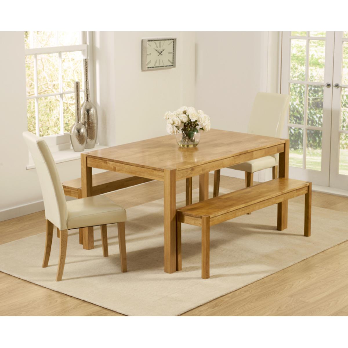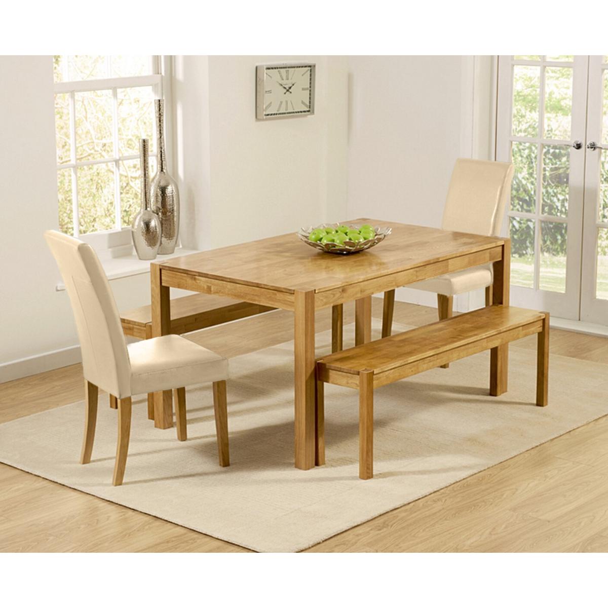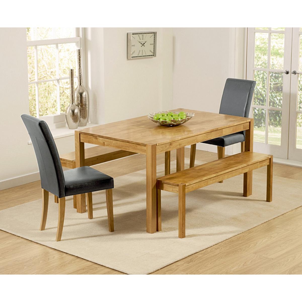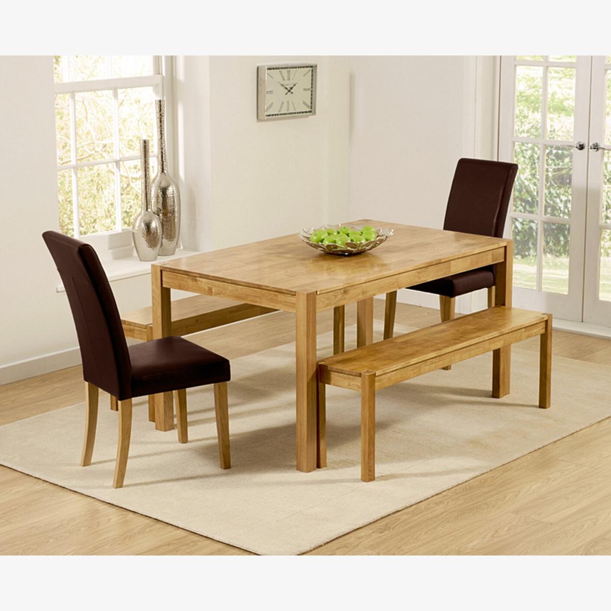 York 150cm Solid Oak Dining Table With 2 Brown Olivia Chairs And 2 York Bencheses