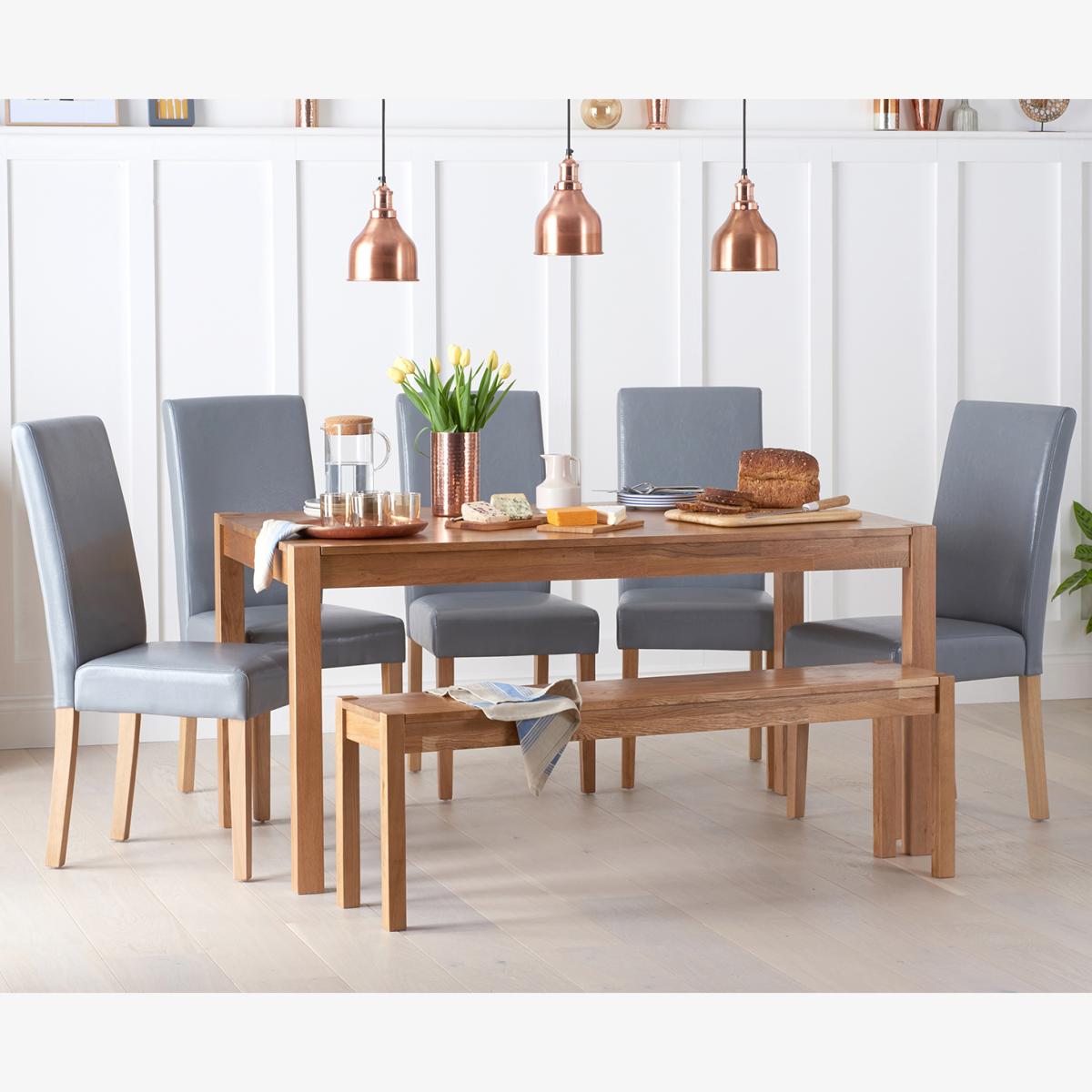 York 150cm Solid Oak Dining Table With 2 Grey Olivia Chairs And 2 York Bencheses
