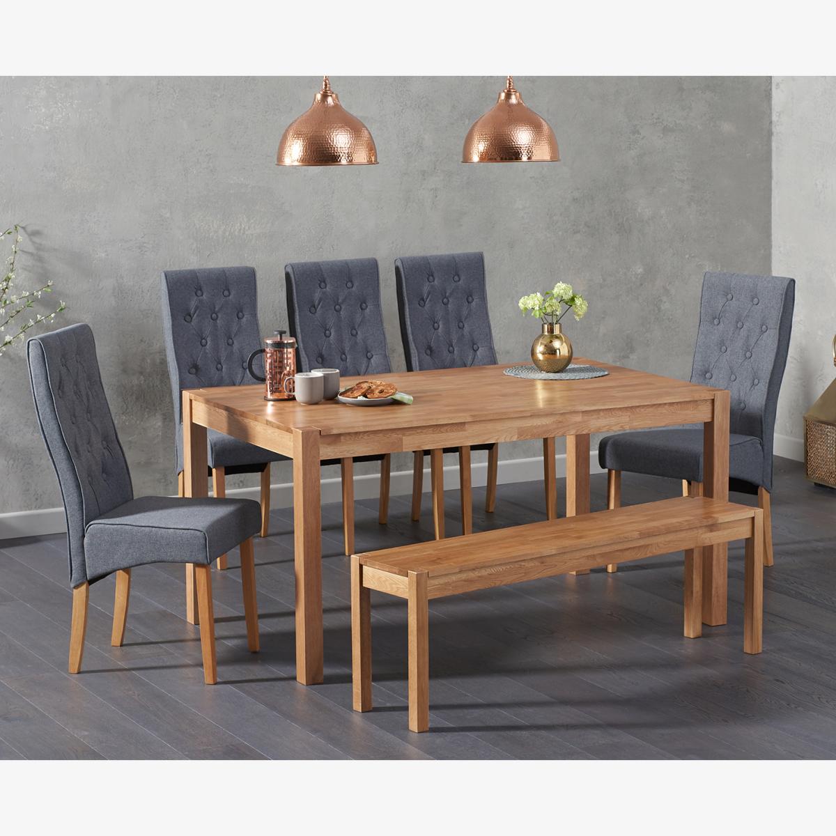 York 150cm Solid Oak Dining Table with 4 Grey Maya Chairs with 2 Oak Benches