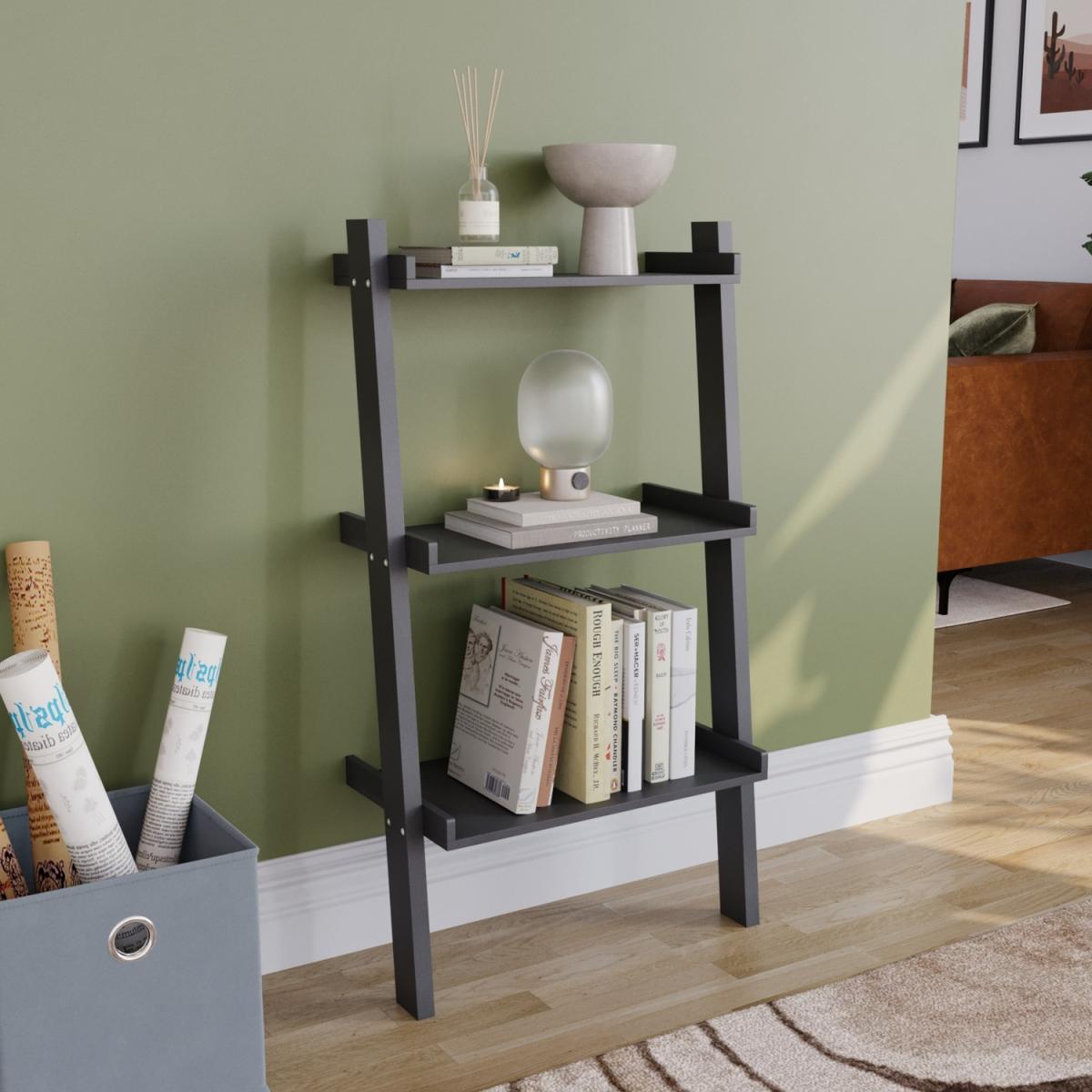 York 3 Tier Ladder Bookcase - Black