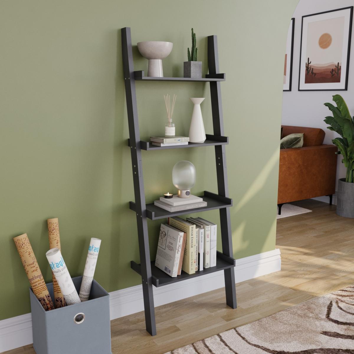 I’d call this the black ladder shelf - it’s a great fit when you need storage without eating into floor space. Its slim, lean frame complements contemporary, Scandi or even industrial schemes, and the open tiers keep the room feeling light rather than boxed in. For styling, mix up books arranged both vertically and horizontally, interspersed with small plants or ceramic vases to add texture and colour. Leave one or two shelves sparsely filled so it doesn’t look over-cluttered, and consider using a woven basket on the bottom tier for stashing throws or magazines.