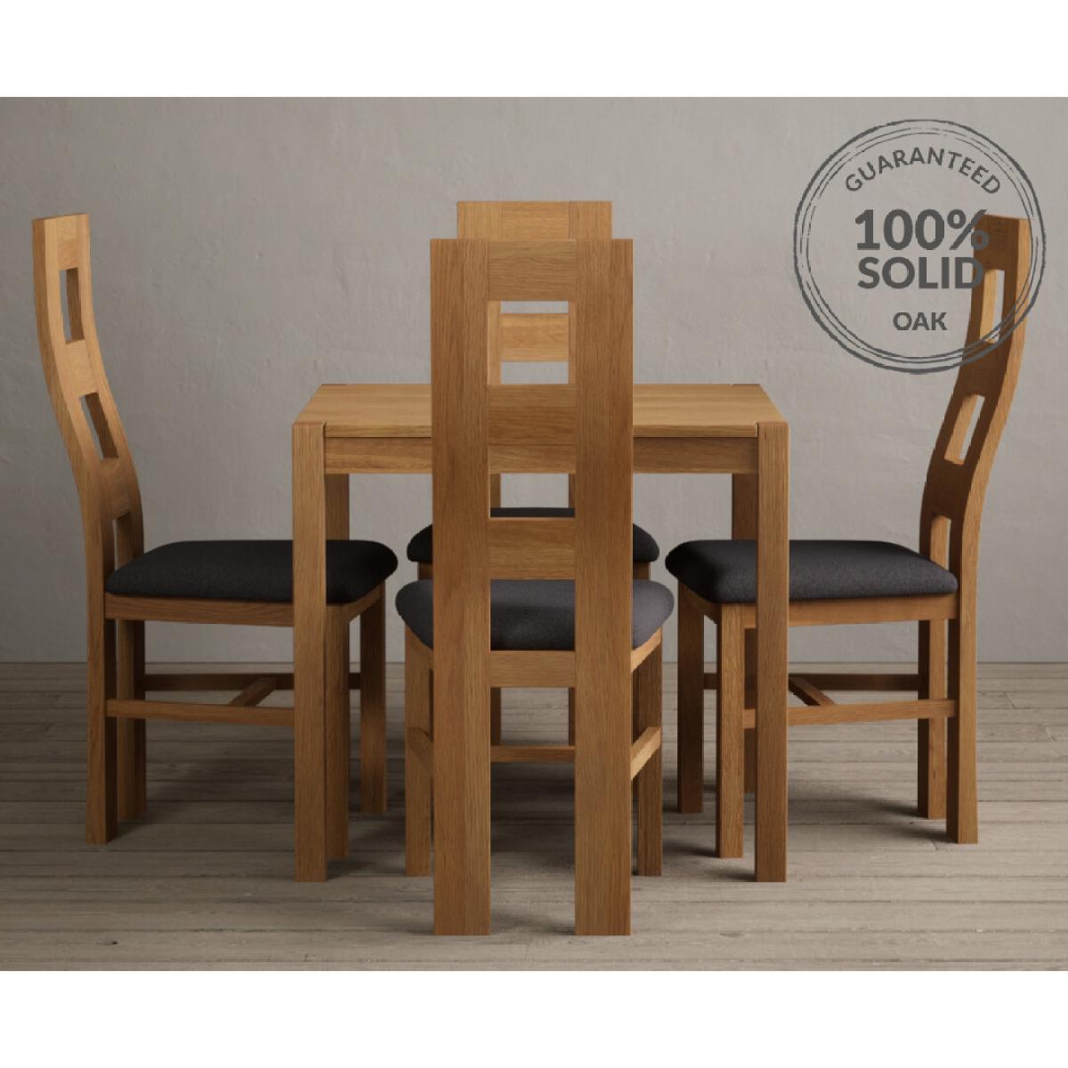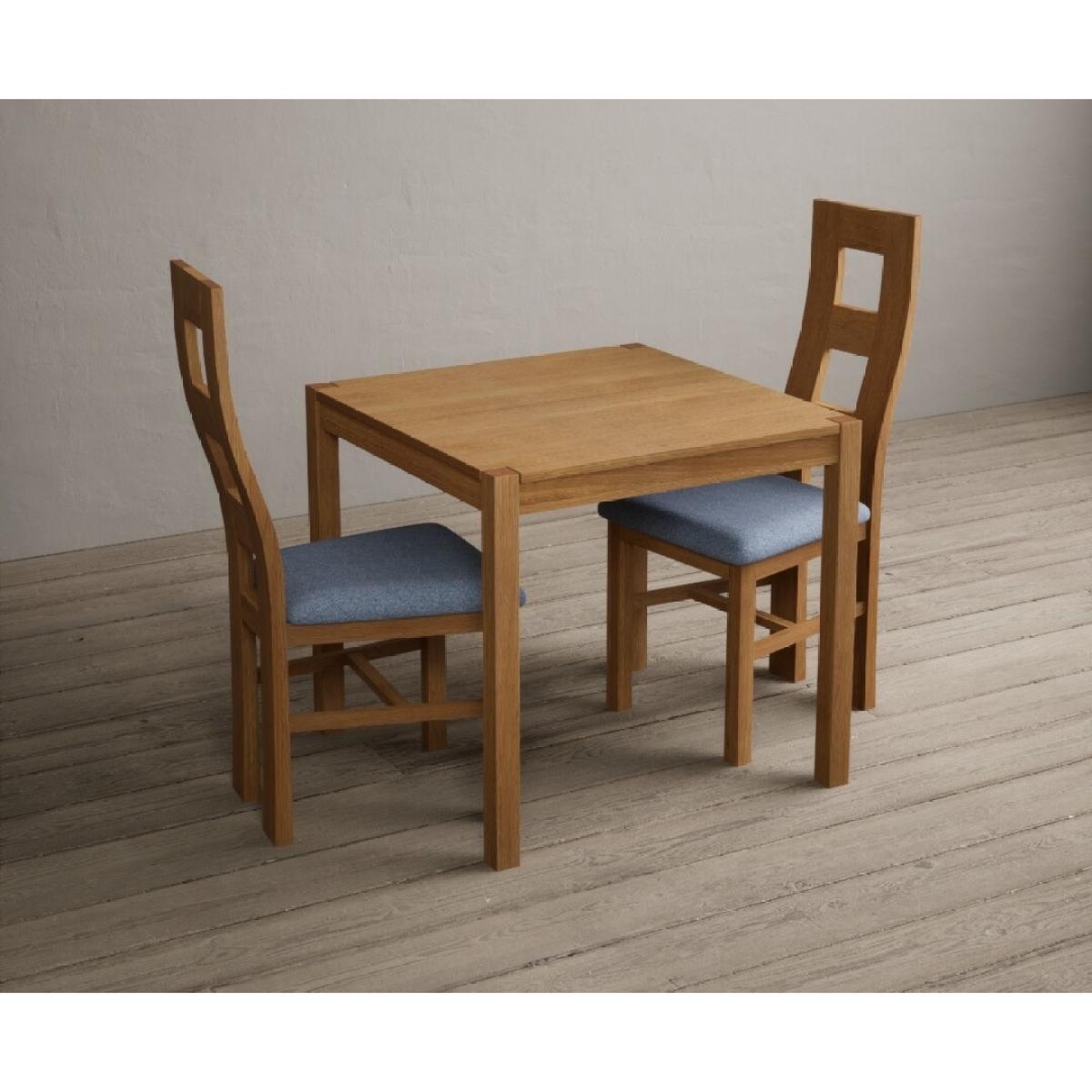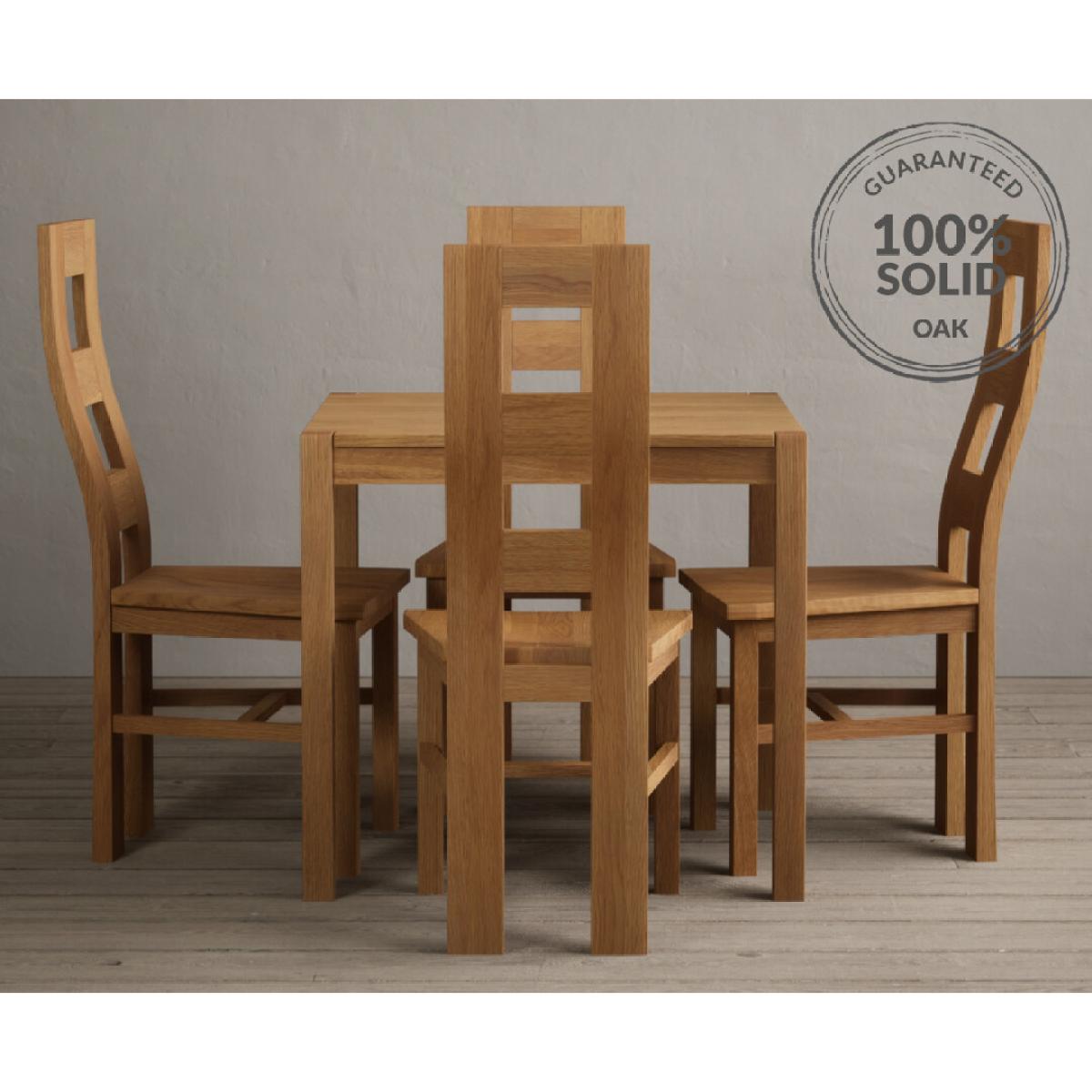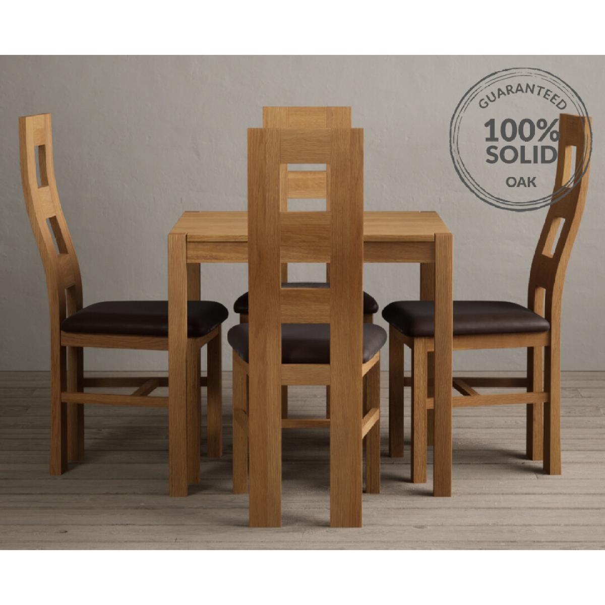 The York 80cm Solid Oak Dining Table with Flow Back Chairs is a small dining set with a square solid oak dining table and matching chairs.