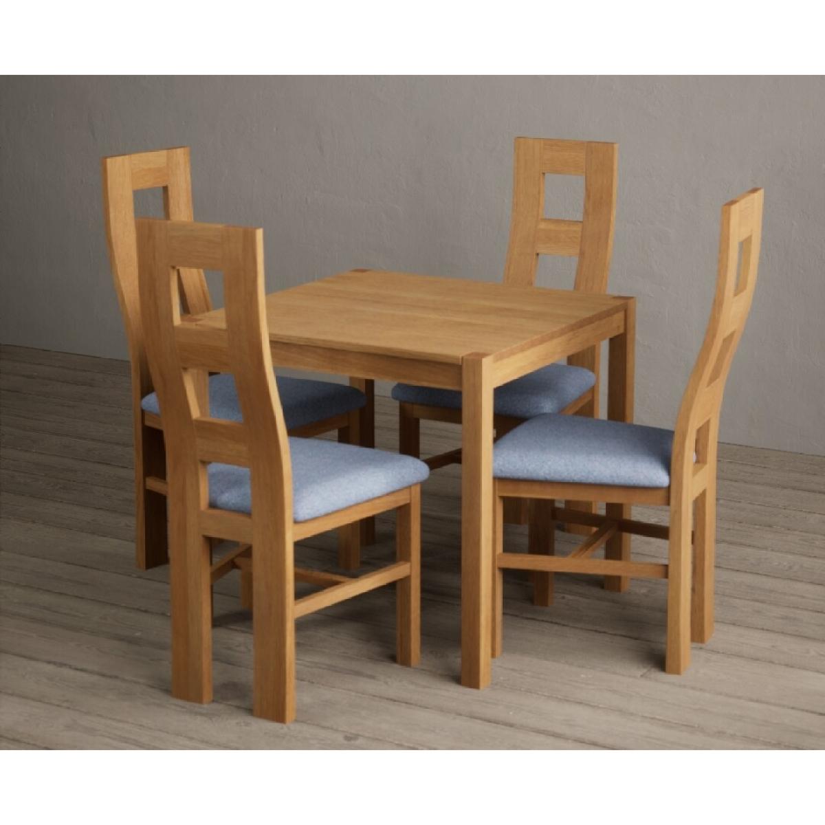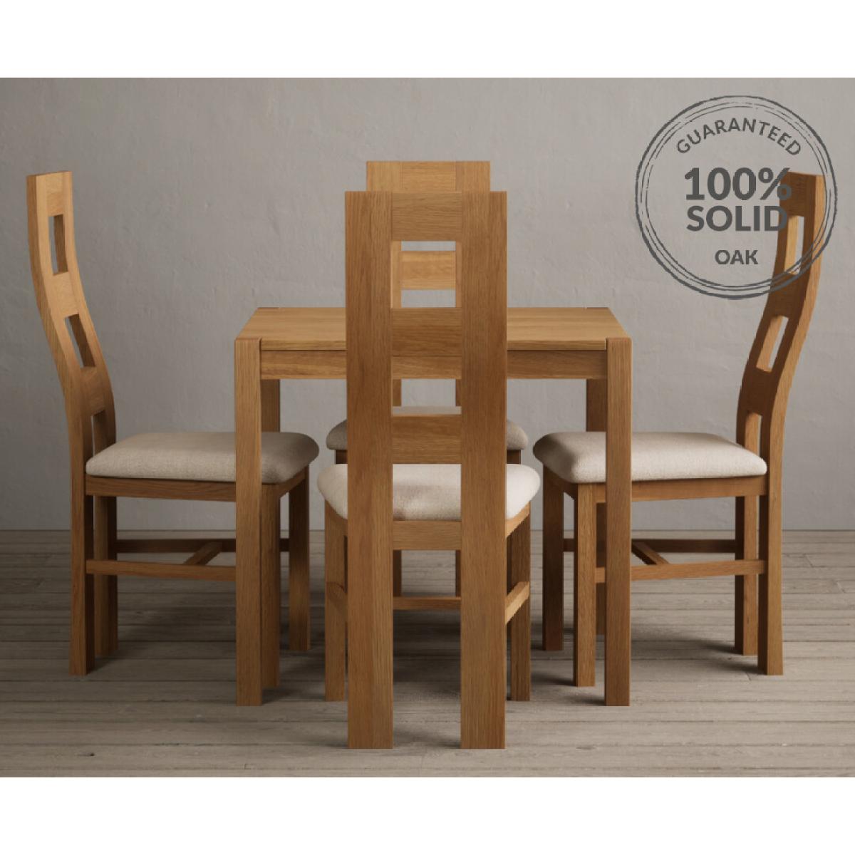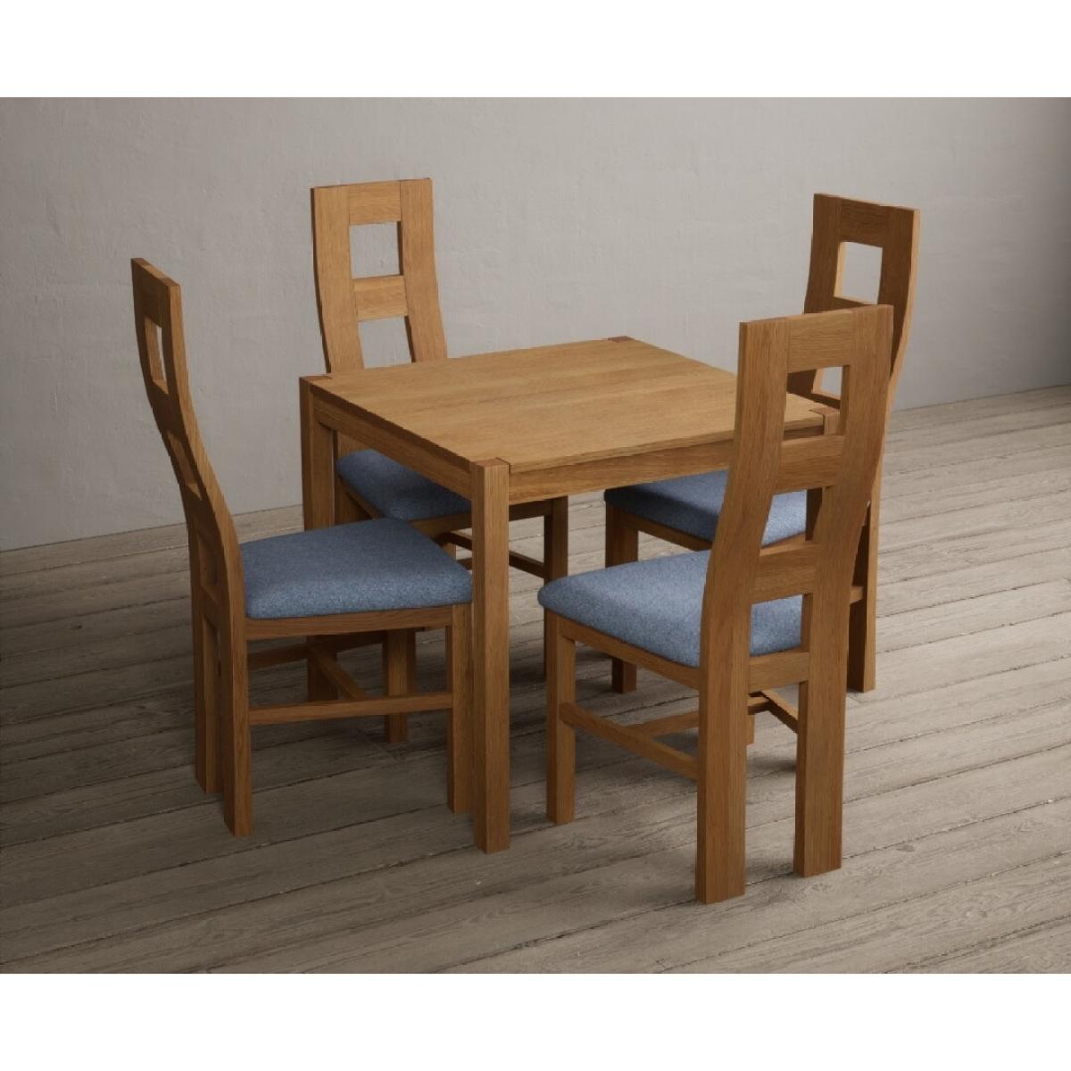 The York 80cm Solid Oak Dining Table with Flow Back Chairs is a small dining set with a square solid oak dining table and matching chairs.