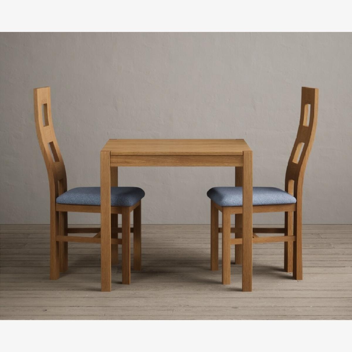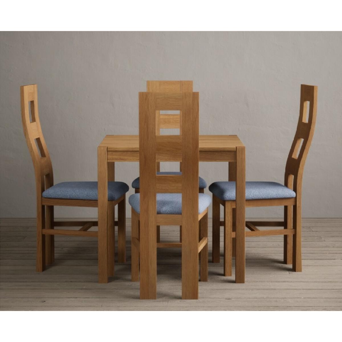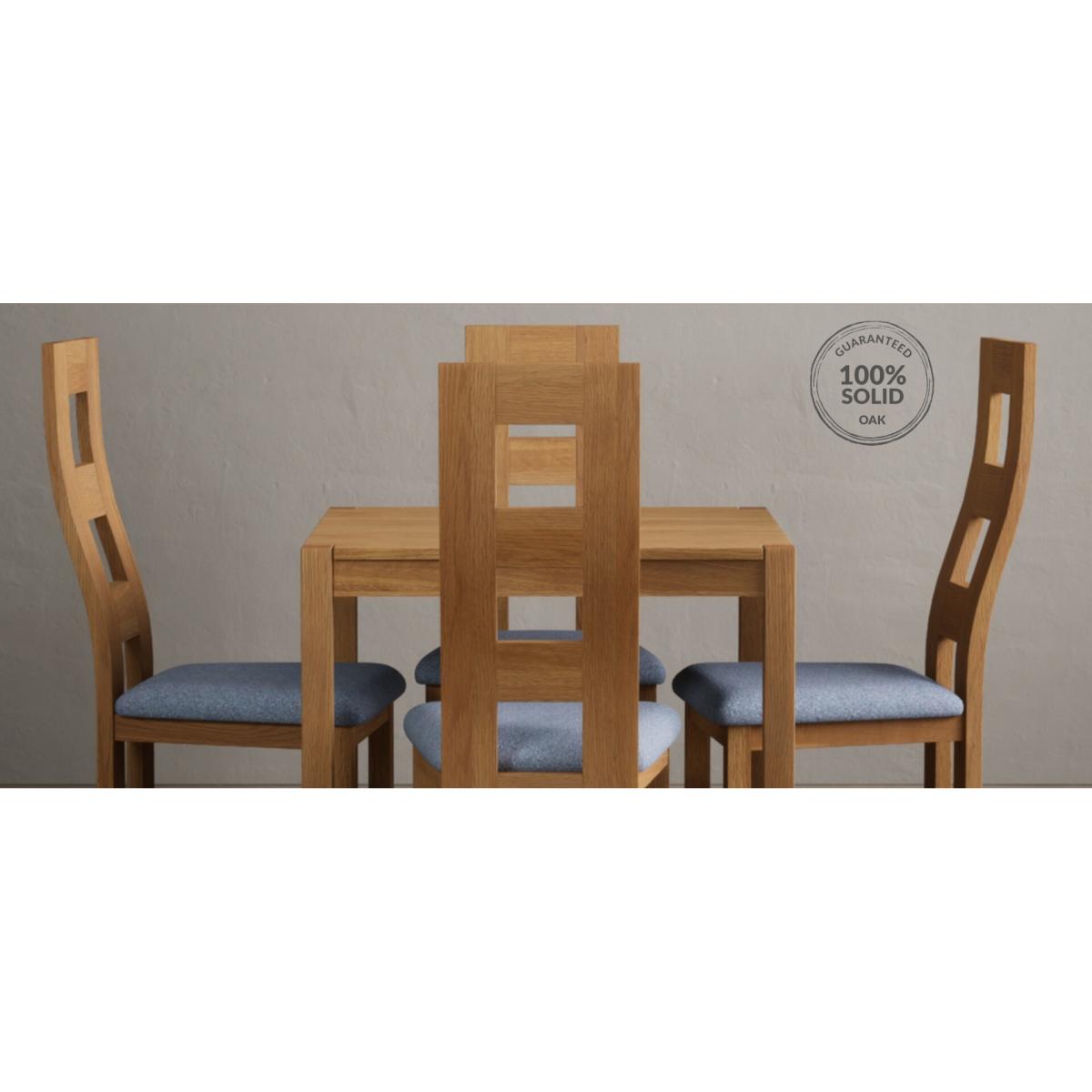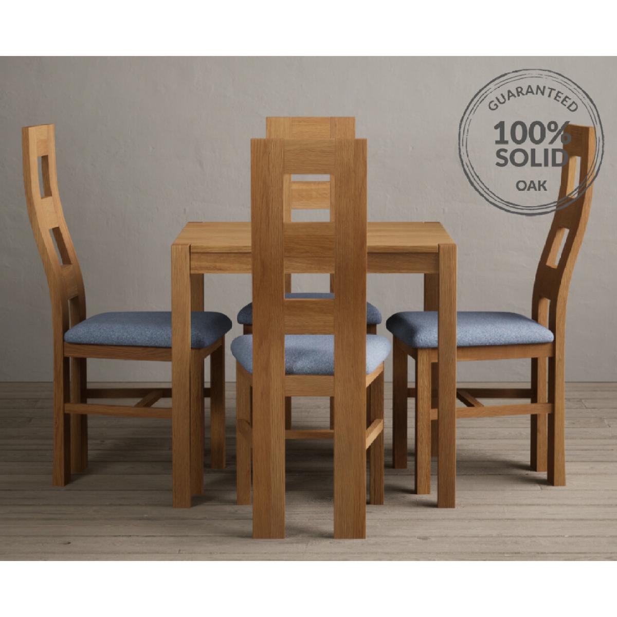 The York 80cm Solid Oak Dining Table with Flow Back Chairs is a small dining set with a square solid oak dining table and matching chairs.