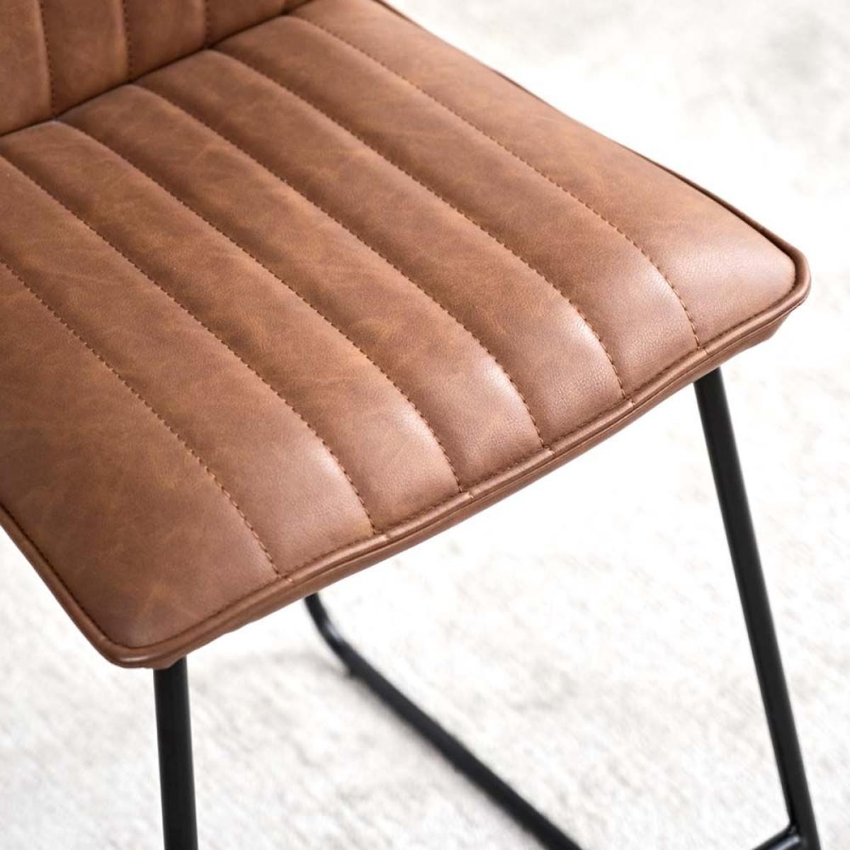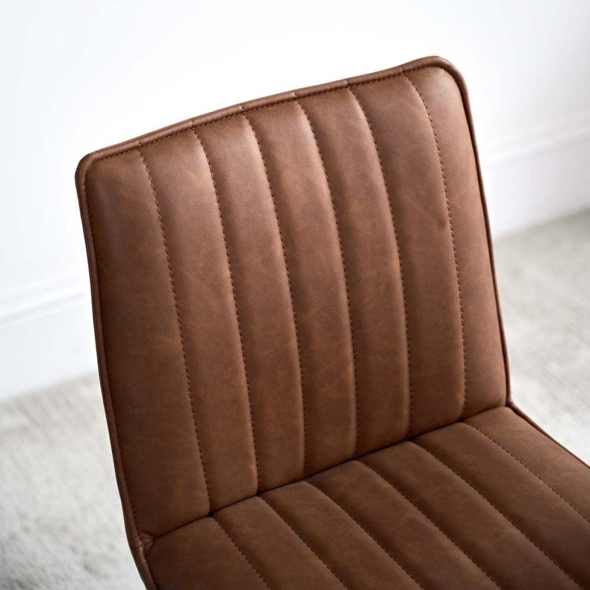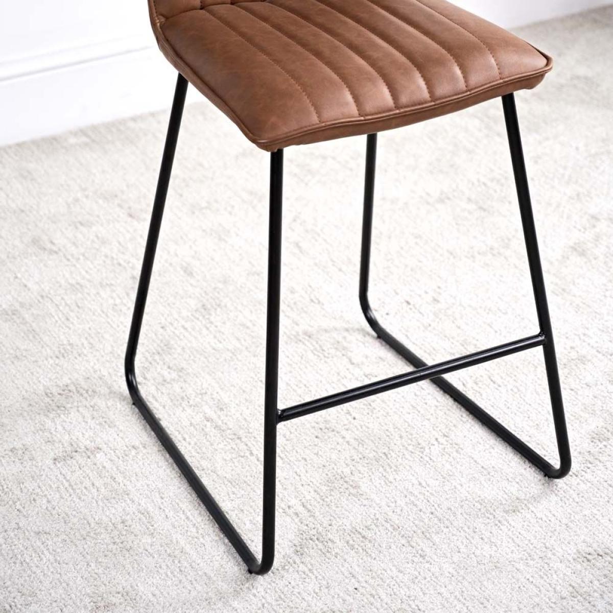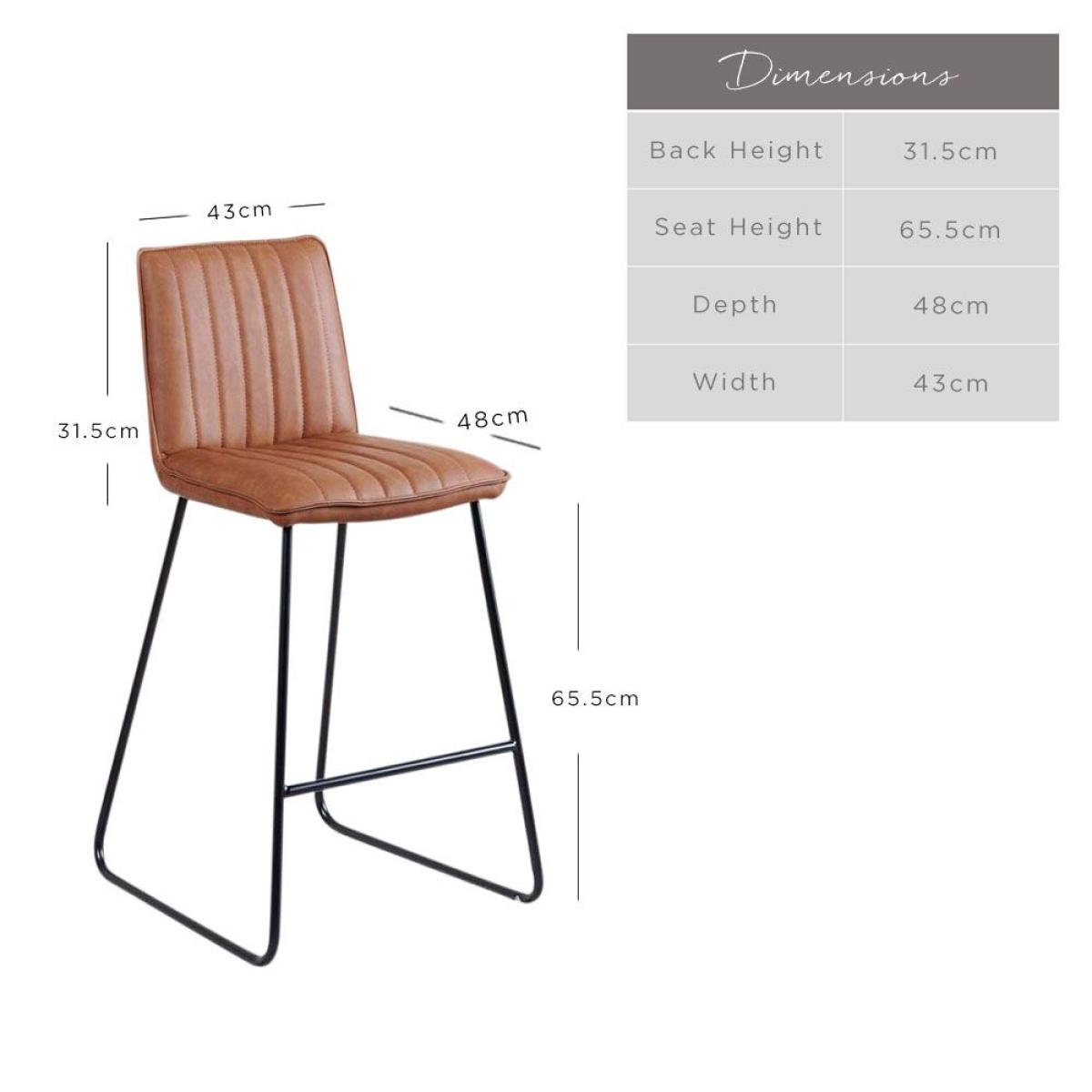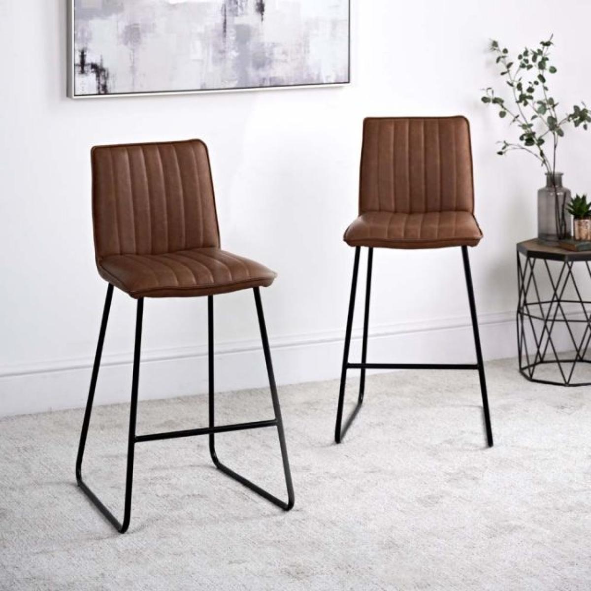 The sylish York Bar Stool with its faux tan leather upholstered seat makes a modern addition thats perfect for positioning at a breakfast bar. Its design will fit nicely into a variety of different home decor styles. Also available in Grey. Dimensions: H97cm x W43cm x D56cm x Seat Height 65.5cm. Simple self assembly Fabric samples available on request. Sold as a pair