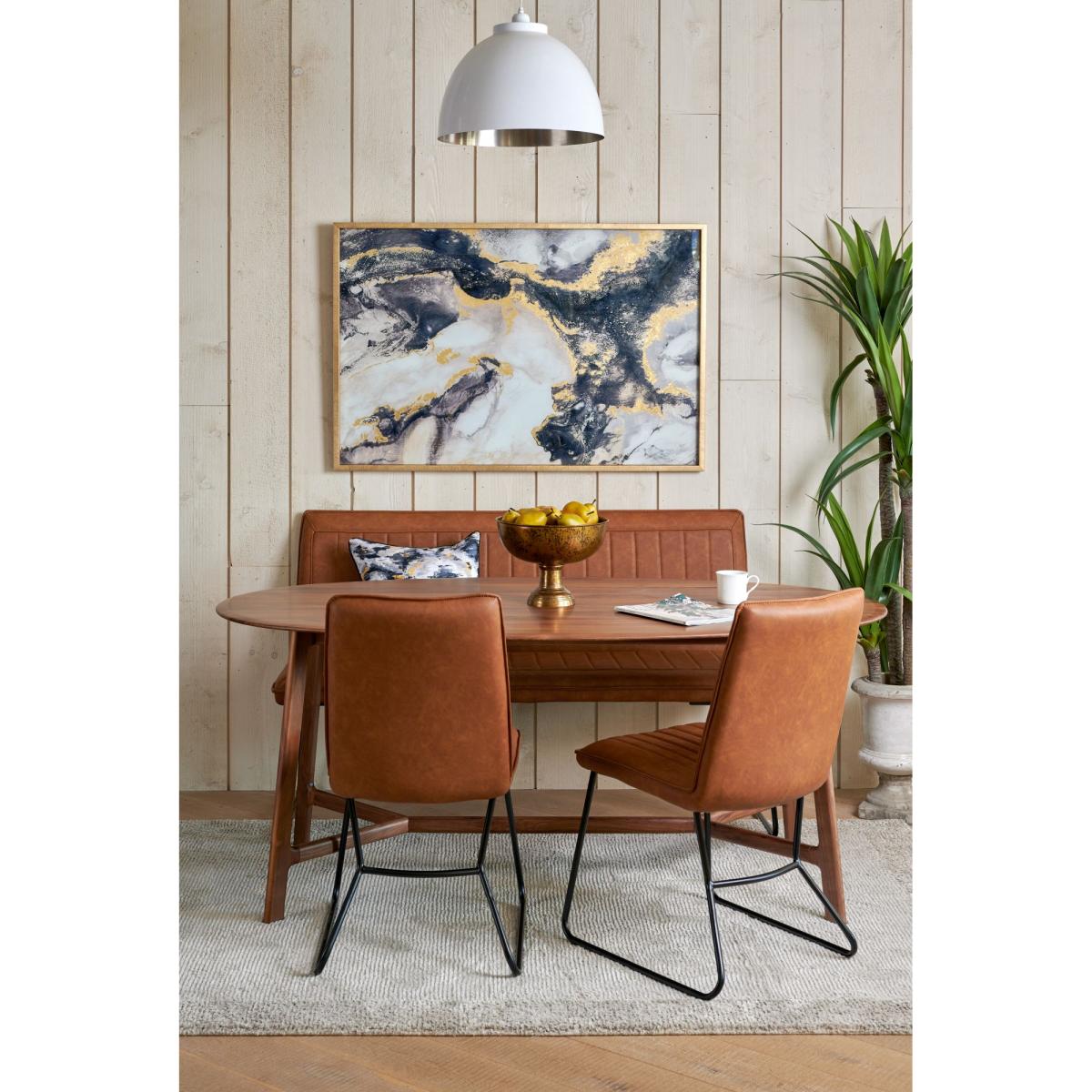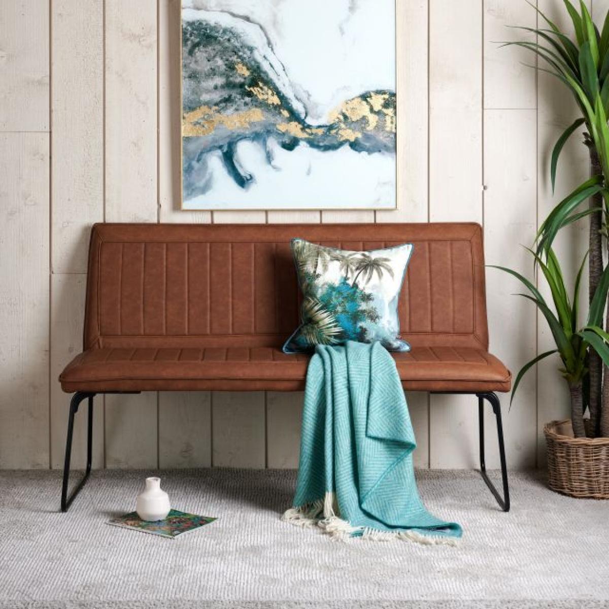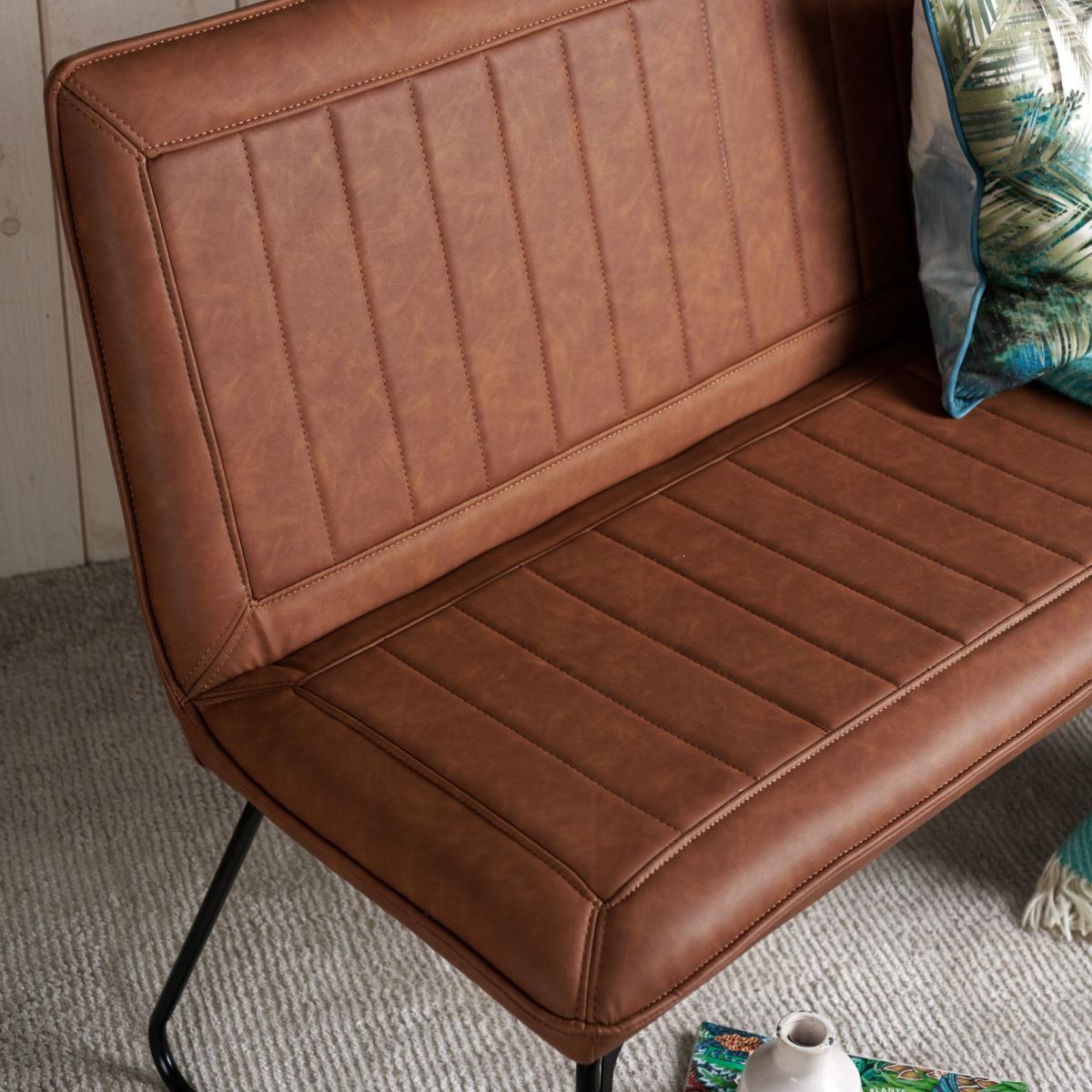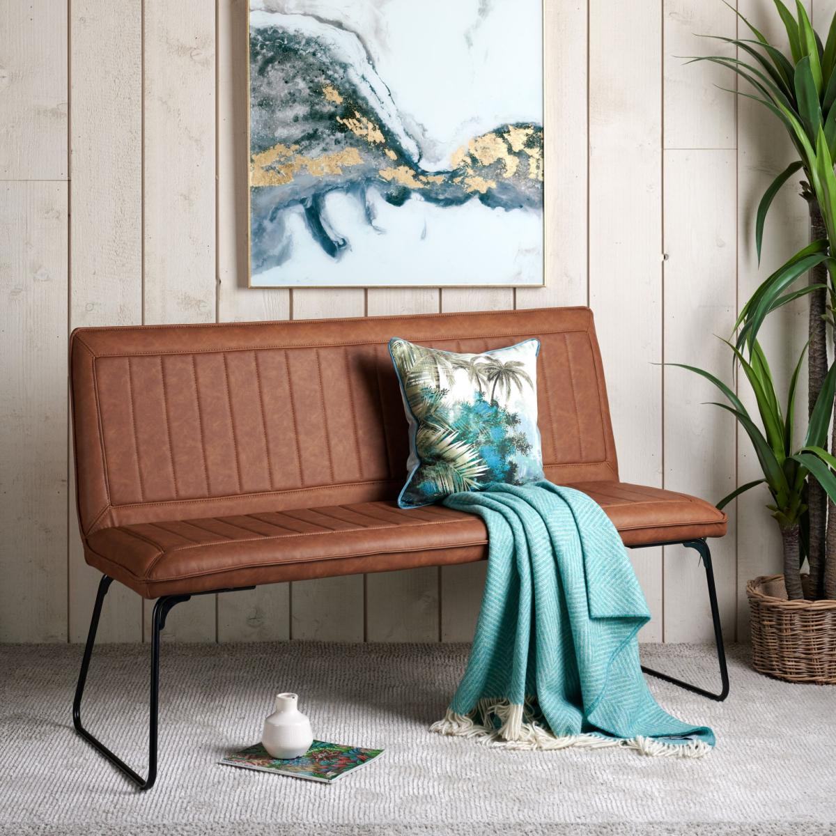 The York tan faux leather upholstered bench with back is a stunning seating arrangement for the dining table. Add a touch of sophistication to your dining area with this beautiful tan dining bench with back, formed of an upholstered faux leather seat with metal legs in a black finish. Also available in a stylish grey. Dimensions: H93cm x W149cm x D57cm Seat Height 49cm. Simple self assembly Fabric samples available on request