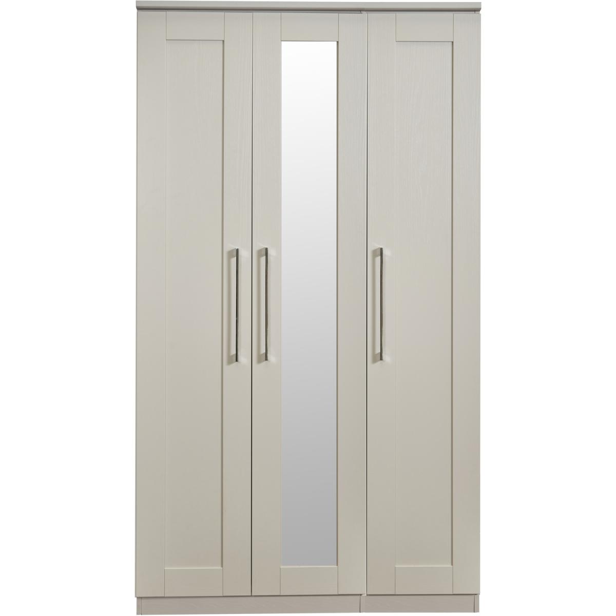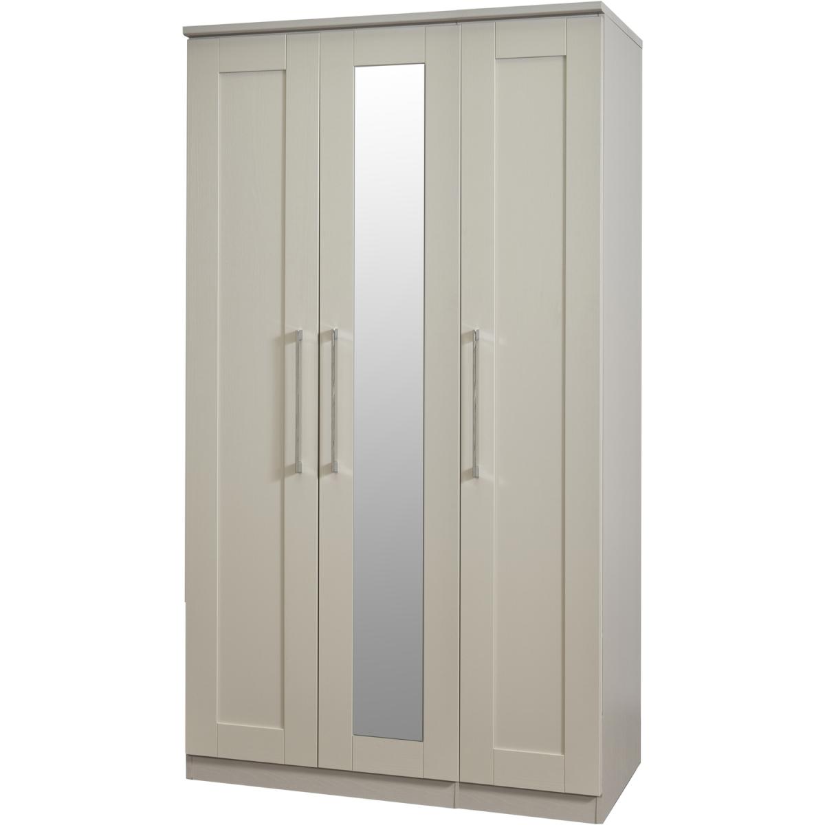 This tall triple 3 door wardrobeis perfect for any bedroom when a normal wardrobe is just not large enough. Also features a full height single mirrored door. Wood grain effect, panelled design, recessed fronts and chrome handles, the York Range is a beautifully elegant collection. With this range you have the freedom to choose from a wide range of furniture configurations, allowing you to create the perfect combination to optimise your storage space. All our furniture is made in the United Kingdom, to the highest quality. It is delivered direct to your location of choice by one of our two man delivery teams, and come full assembled (although legs may be removed to prevent damage in transit).