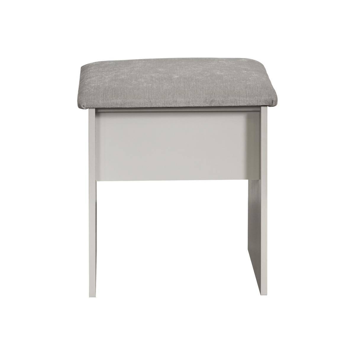 A small vanity stool. A light simple, yet sturdy design, with a soft cushioned seat. Makes an idea companion to a desk or vanity. Wood grain effect, panelled design, recessed fronts and chrome handles, the York Range is a beautifully elegant collection. With this range you have the freedom to choose from a wide range of furniture configurations, allowing you to create the perfect combination to optimise your storage space. All our furniture is made in the United Kingdom, to the highest quality. It is delivered direct to your location of choice by one of our two man delivery teams, and come full assembled (although legs may be removed to prevent damage in transit).