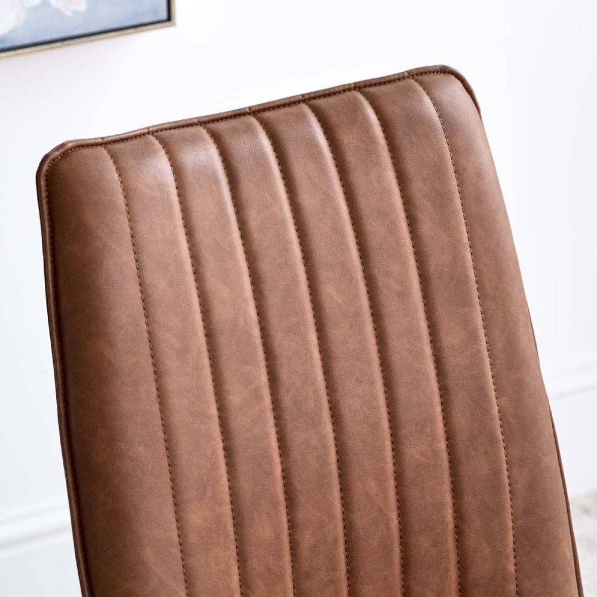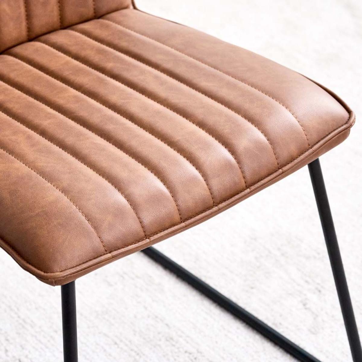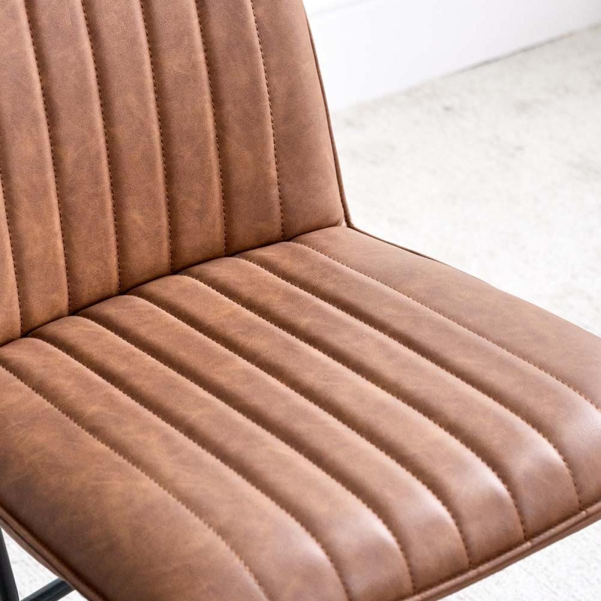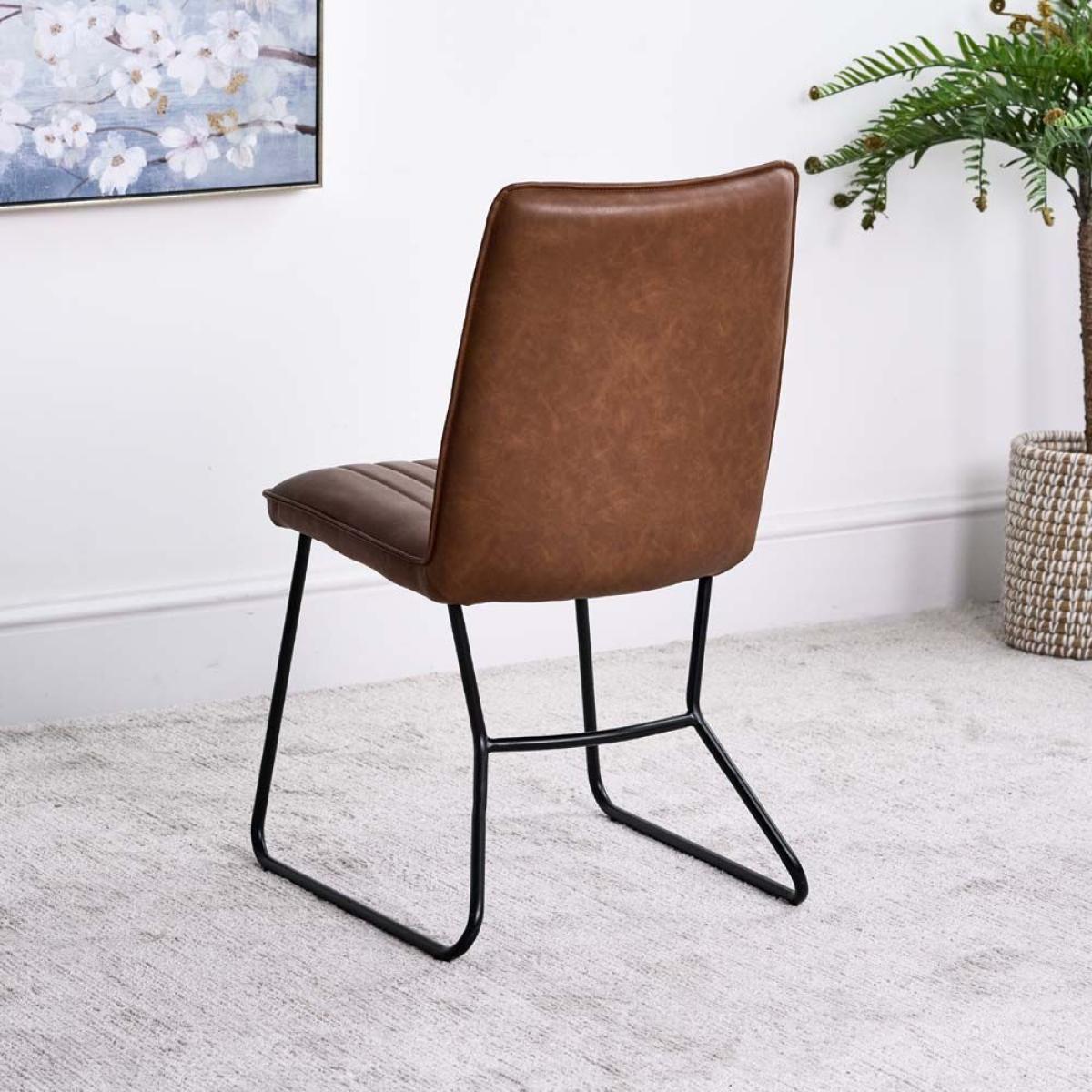 Divine Dining. This York dining chair set is upholstered in a tan faux leather with line detailing and sleek metal legs for a beautiful addition to the everyday dining room. Also available in Terracotta Pink, Sky, Olive, Anthracite, Lemon Yellow, amp; Grey. Dimensions: H90cm Seat Height 48cm x W49cm x D57cm Simple self assembly Fabric samples available on request. Sold as a pair