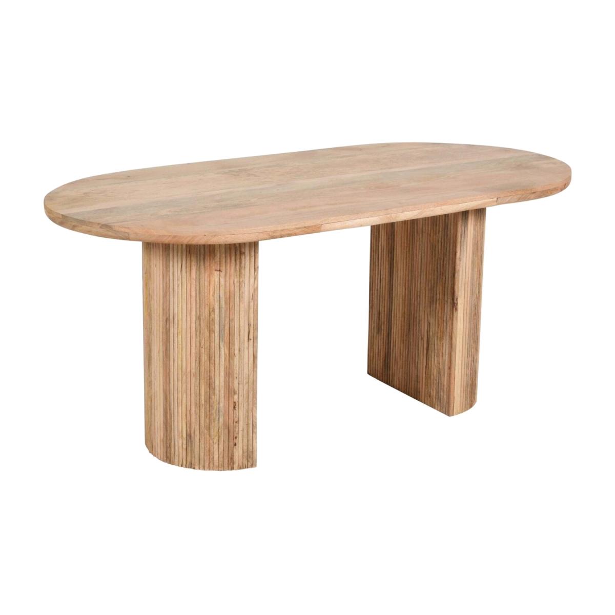 I’m a fan of the York table for its clean lines and warm oak tones, which make it a versatile centrepiece in both Scandi-inspired and contemporary schemes. The simple oval top and chunky legs give a modern twist on rustic style without overwhelming the space. For styling, keep it minimal: mix and match dining chairs in muted hues, layer a neutral jute rug underneath, and use a slim linen runner down the middle. A cluster of terracotta pots or a row of small vases with seasonal foliage adds texture, while a single pendant light hung low creates a defined, inviting dining spot.