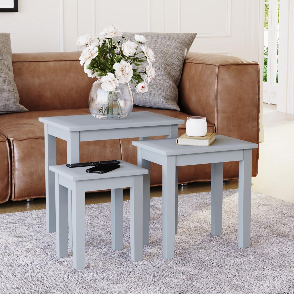 Introducing the Yorkshire Nest of Tables collection a testament to timeless elegance and functional simplicity. Crafted with utmost precision and a nod to classic design, this 3-piece set seamlessly blends into any living space, adding a touch of sophistication. Each table within the set is thoughtfully designed to complement the others, creating a harmonious nesting arrangement that is both space-saving and visually appealing. The simplicity of the design allows these tables to effortlessly integrate into various home aesthetics, from traditional to modern, making them a versatile addition to your furniture ensemble. Constructed with quality materials, these tables boast durability that goes hand in hand with their aesthetic charm.