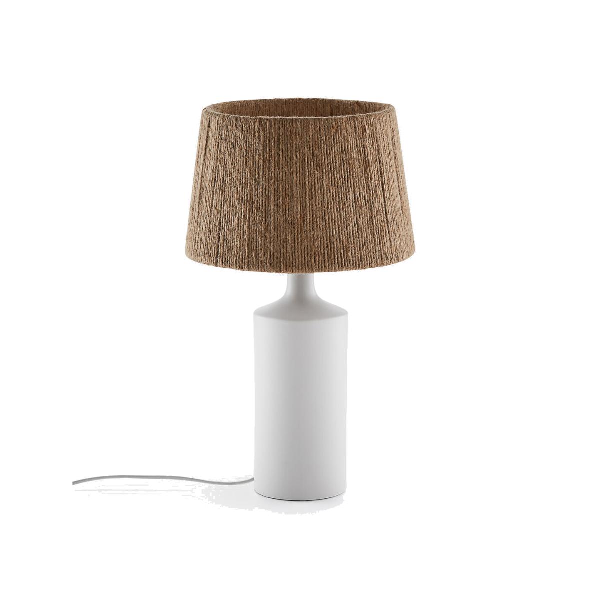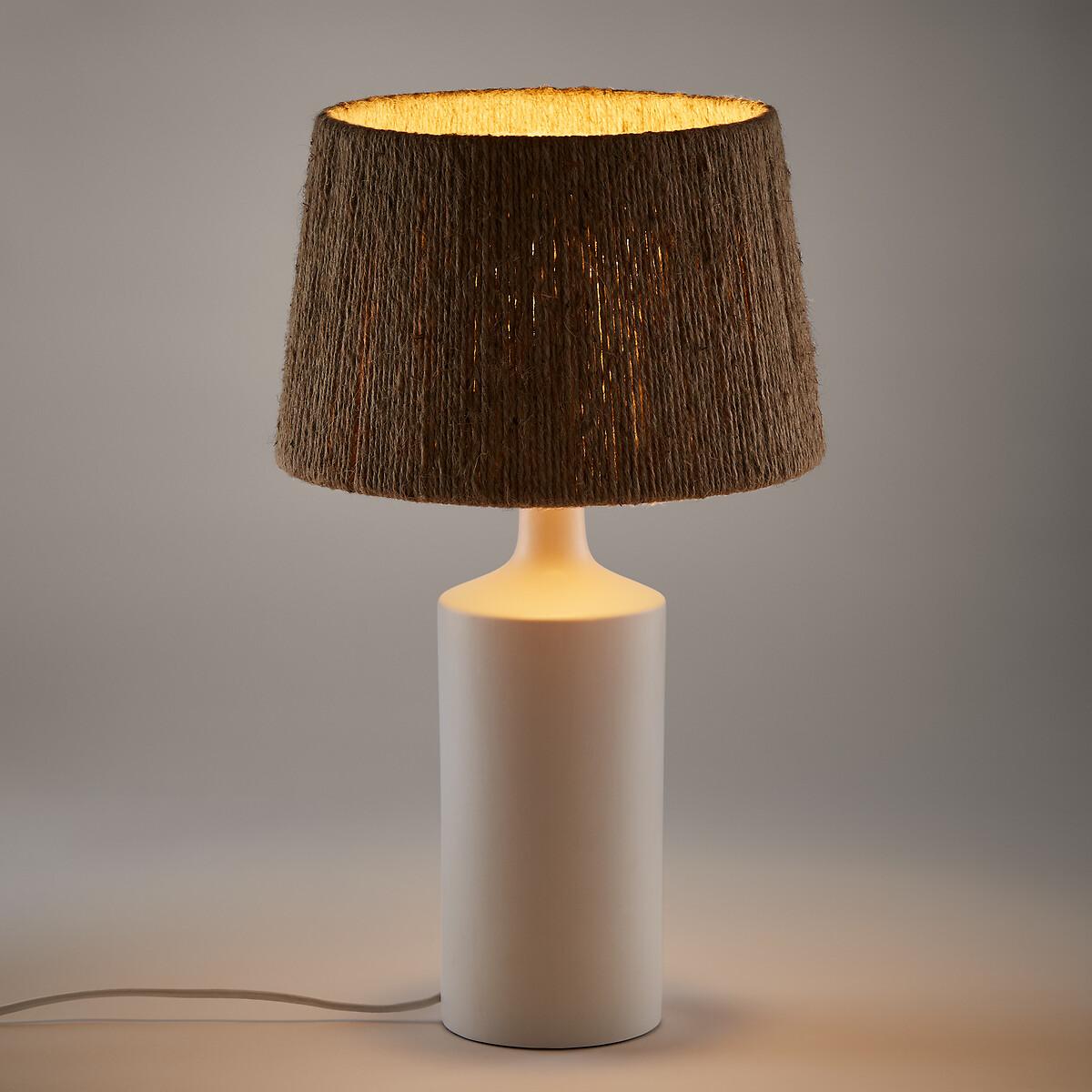Simple and decorative. With its matte ceramic base and hemp lampshade, Yoru asserts its 100% natural trend.. Product Details • Hemp lampshade • Ceramic base • E27 socket for compact fluorescent bulb, 15 watt max (not included) • Compatible with energy class bulbs: ADimensions • Diameter: 31.5cm • Height: 54cm • Lampshade:Diameter 31.5 x H20cm Dimensions and weight of parcel1 parcel • L40 x H39 x D40cm. 3.54kg.