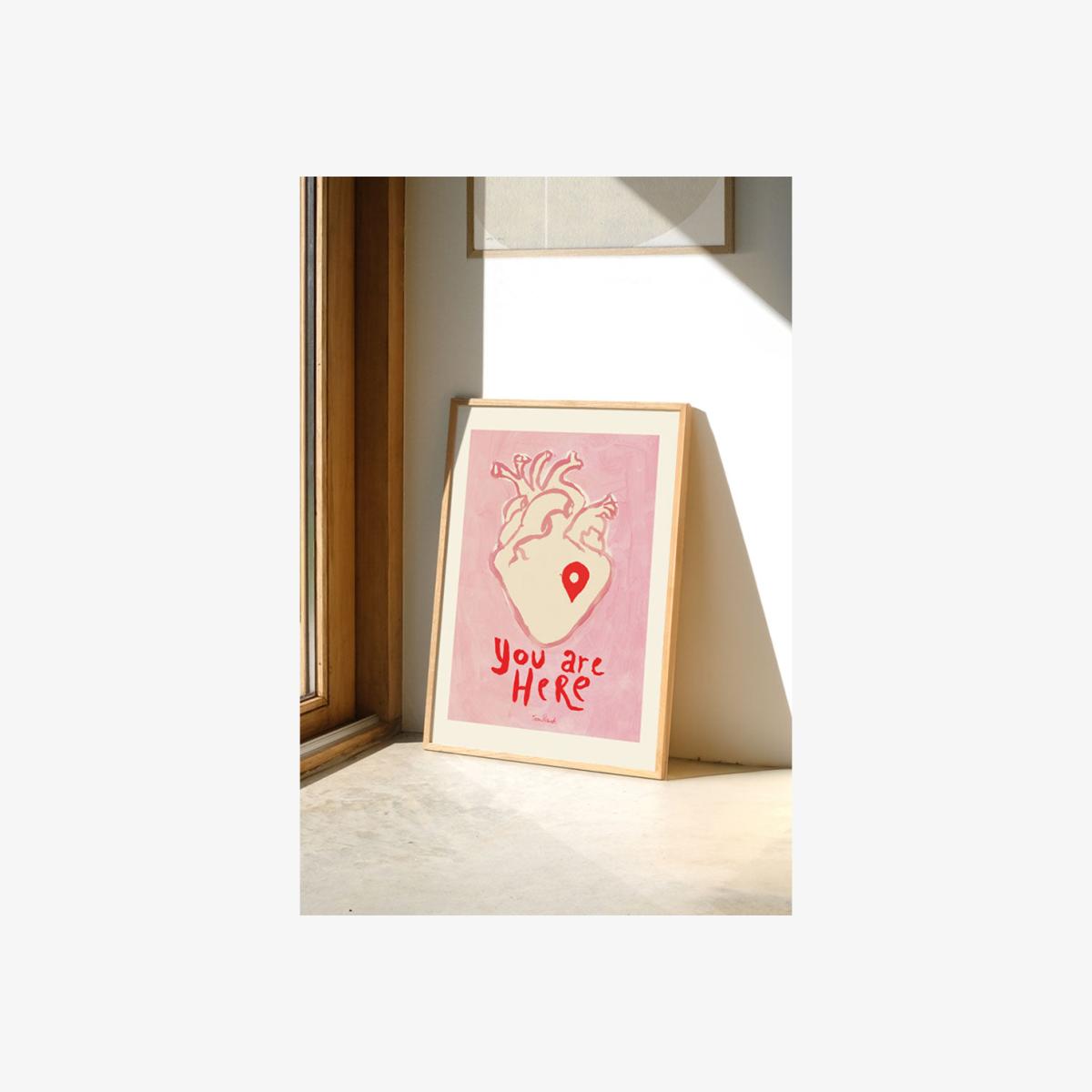 <!--td -- > See this, fall in love with it and send one to every special person in your life (and we are totally OK with self-gifting, btw). It’s modern art at its best – a colourful, graphic statement piece that leaves no-one in any doubt as to how you feel. The hand-drawn, handwritten effect gives this an individual feel that enhances the central message even more - you can’t fail to be swept off your feet by this. Baby pink and bold red are a colour combination we love, and are just perfect for brightening up a kitchen wall, sideboard or shelf. Why not make this a gift for the apple of your eye, whether that’s your romantic partner, a family member or your best friend. It's a statement piece of modern art that’s sent with love.- You Are Here Art Print - Unframed - Measures: H40cm x W30cm - Material: Digitally printed on 250gsm luxurious museum-quality paper- Please note this piece is unframed