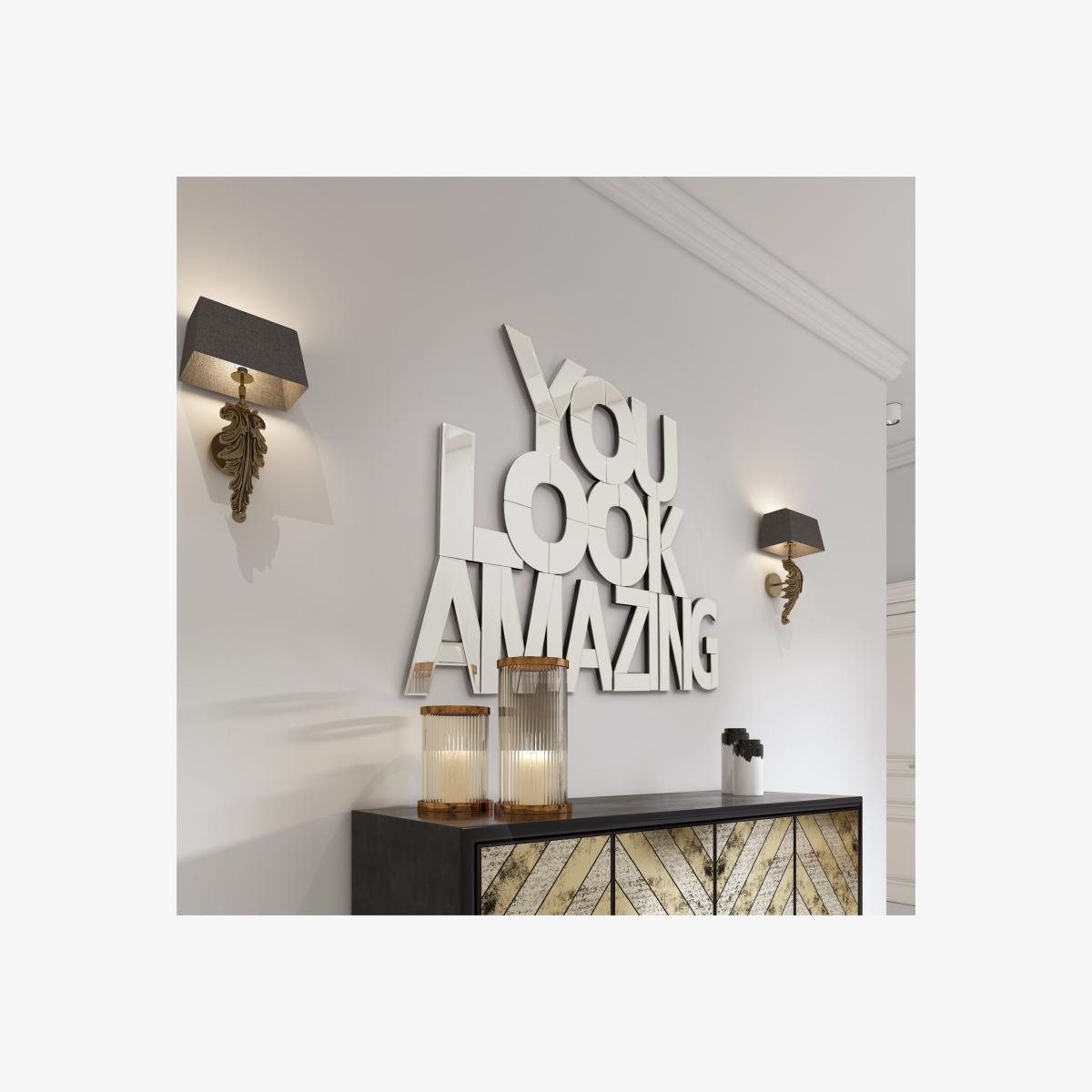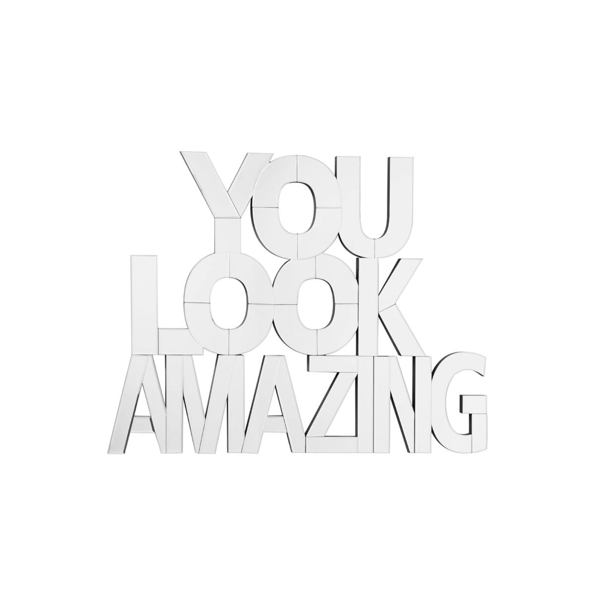 * Bold and modern * Mirrored wall art * 'You Look Amazing' typography * Great for bedrooms or hallways Add a confidence boost to your bedroom, dressing area or hallway with this modern mirrored wall art. Depicting 'You Look Amazing' in block letters, this piece will have great impact, filling a wall and bringing with it an uplifting sentiment. The mirrored surface will bounce light back into the room and create an eye-catching focal point. Great for modern interiors and anyone who would like an added spring in their step when they leave the house!