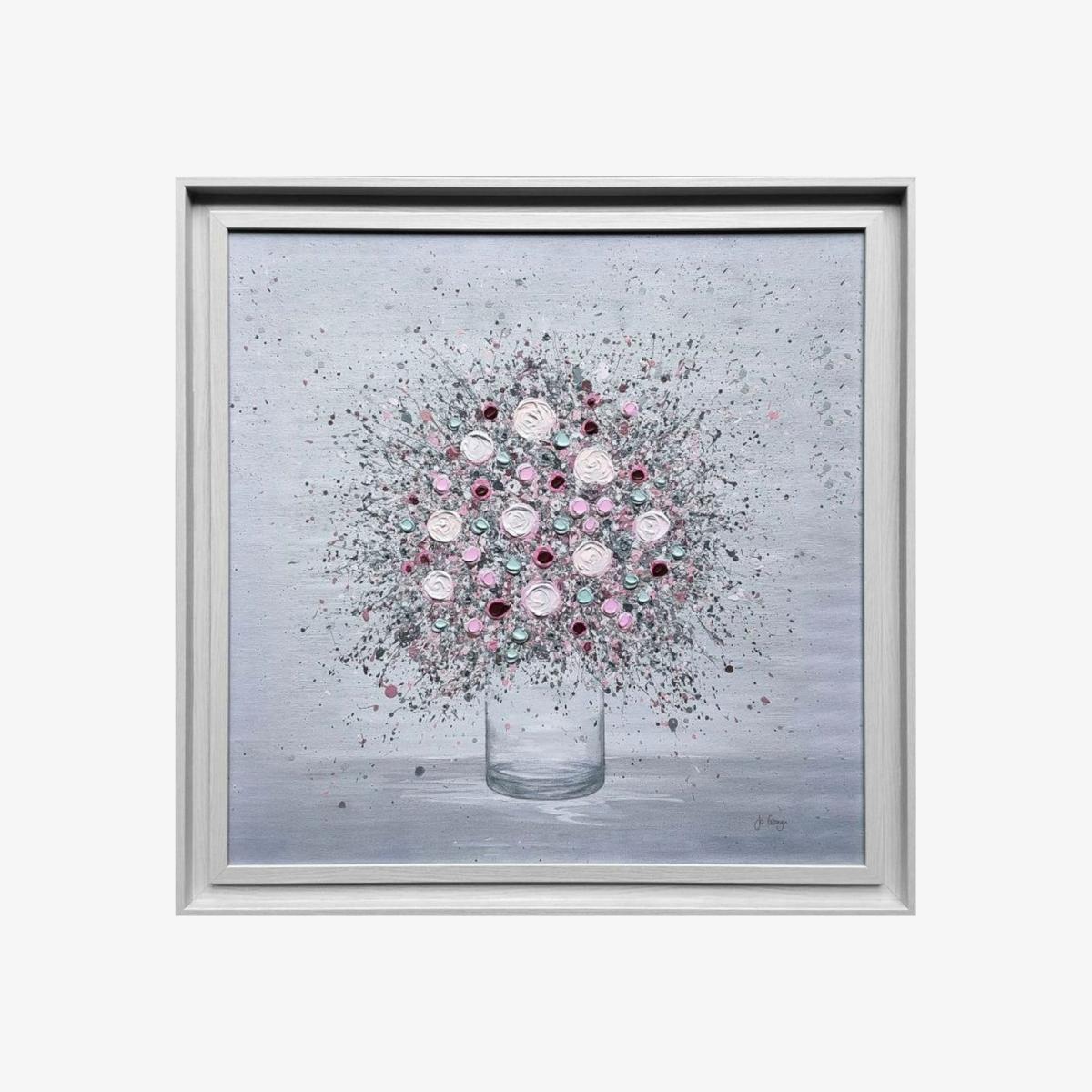 Framed canvas wall art by Jo Gough, featuring a white recessed frame and hand-painted embellishments. This charming canvas by Jo Gough captures the gentle beauty of pink and white roses in full bloom, arranged in a vase and set against a soft grey backdrop. The floral arrangement is painted with delicate detail, with hand-painted embellishments adding a textured finish to the petals and leaves. Framed in a white recessed frame, this piece brings an air of elegance and calm to any space. A lovely choice for bedrooms, hallways or anywhere you want to add a soft, romantic touch.