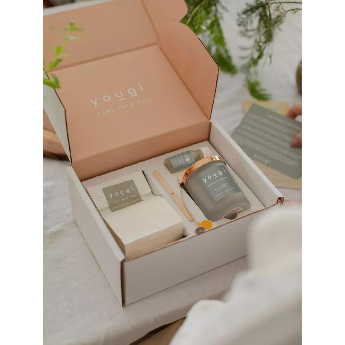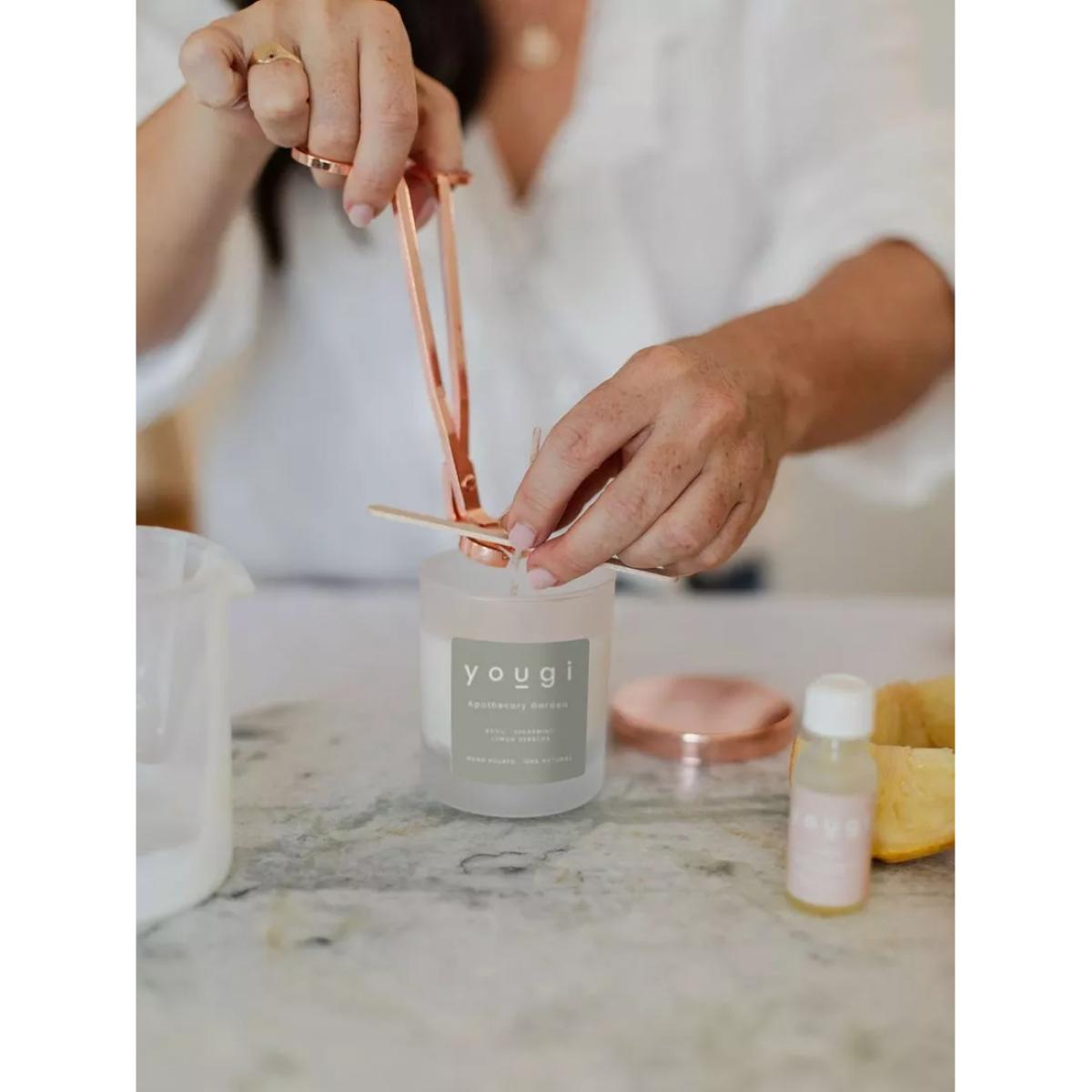 The Yougi Apothecary Garden candle kit contains everything you'll need to make 100% natural candles at home. You will start by heating the wax, blending the oil, setting up the wick, and finishing by pouring your 165ml candle. All raw materials are cruelty-free, ethically sourced, eco-friendly, and 100% natural.