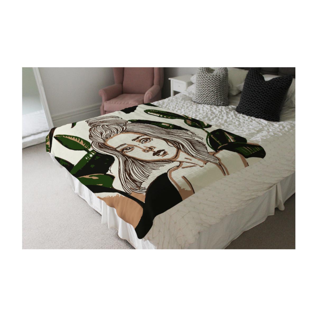 Young Woman in Tropical Leaves Designer Blanket - Green