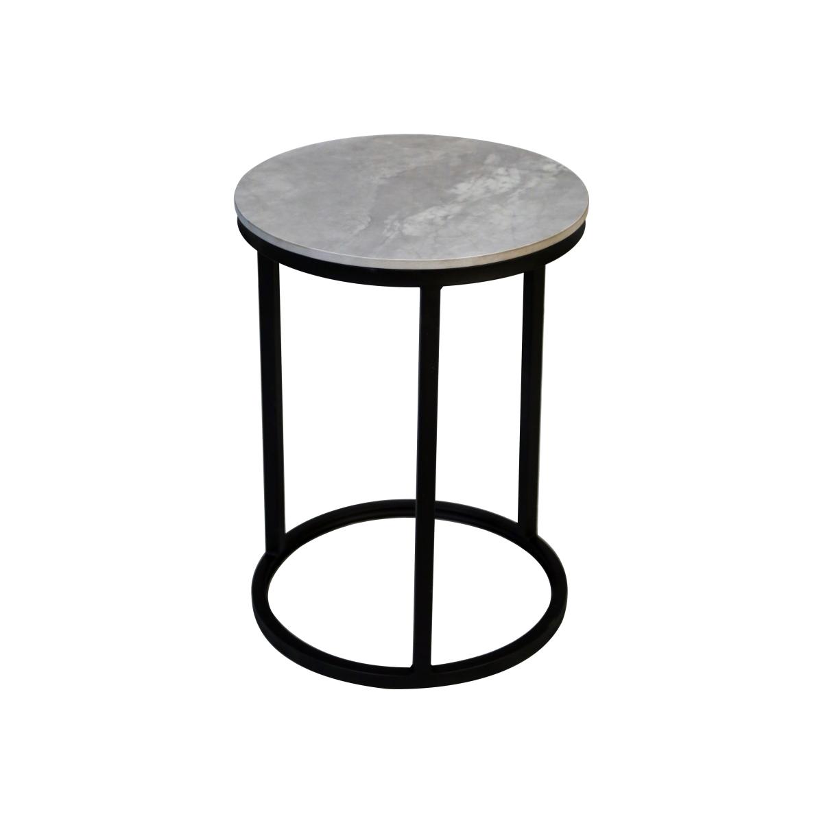 This round side table captures the essence of contemporary style thanks to its grey ceramic top and black metal base. Perfect for a modern living room. Why you'll love it. Fusing durable contemporary finishes, this side table is both stylish and practical. Elegant modern style. Circular grey ceramic top. Black powder-coated metal base. Hardwearing and practical ceramic is heat-, scratch- and chip-resistant. This great-value side table is part of the Yoyo range. What you need to know. Ceramic top, metal frame. Although very durable, ceramic is not 100% heatproof. Ceramic tops may vary in colour, tone and finish to the images shown. We recommend the use of coasters and placemats. Wipe clean with a soft, slightly damp cloth.