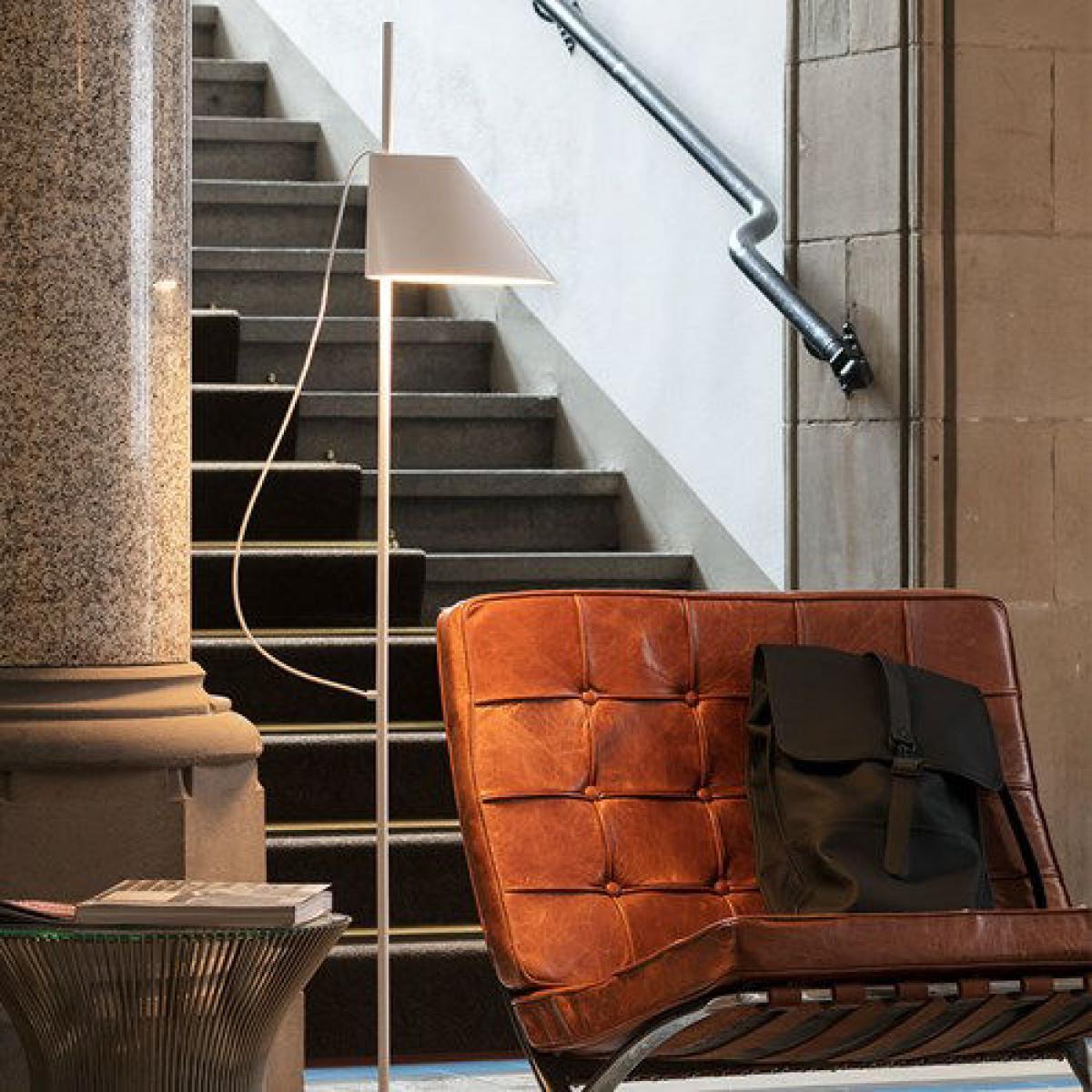 Stine Gam and Enrico Fratesi, who make up Gam. Fratesi, the most exciting design duo of the moment, designed a lamp called Yuh, a tribute to Louis Poulsen's philosophy that design must shape light, and inspired by the classic virtues of Danish design. With an impressive knowledge of the history of design and inspired by Poul Henningsen's approach to lighting and Arne Jacobsen's geometric shapes, Gam Fratesi pays homage to these true legends by giving the new Yuh lamp a characteristic playful aesthetic touch. "We were greatly inspired by Arne Jacobsen's AJ lamp. Its geometry is particularly striking. It’s inclined, but its lampshade is designed so that there is always a part aligned with the ground. It's extremely sculptural, but also very geometric", says Stine Gam. ''It's an architectural element", adds Enrico Fratesi. One of the essential features of the lamp is its great flexibility. A mechanical system offers great freedom of movement so that the light can always be adjusted to the ideal position in the workplace, in a living room, etc. The diffuser turns, stands up and lowers to illuminate and create an ambiance in the desired space: the lamp is designed around you. The lampshade is adjustable in height (it slides along its stem), rotating and tilting. The angle of the lampshade can be modified to optimise the distribution of light. The narrow aperture on the top of the lampshade ensures soft ambient upward lighting. The lamp provides direct downlighting without dazzling. "Our biggest challenge was to design a lamp that could be oriented in several directions. We worked with three different types of movement on the axis: tilt, rotation, and vertical movement. That complicated things a lot It was a real challenge, but at Louis Poulsen, there was a fantastic team of engineers with whom we worked very well", says Enrico Fratesi. "Our desire to fit the diffuser on the base of the lamp comes from our admiration for the work of Poul Henningsen, and our preference for indirect light. We like not seeing the light source directly, and so not being dazzled by it. ", explains Stine Gam. The built-in LED technology offers quality lighting with gradual variation from 15 to 100%. Timer function to turn off the light automatically after a certain time, 3-position switch off / 4 hours / 8 hours. Function that lets you configure a fixed lighting level when the lamp is connected to the mains. A button located at the top of the foot serves as a switch and dimmer.