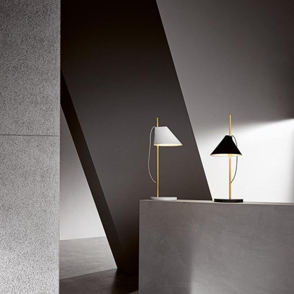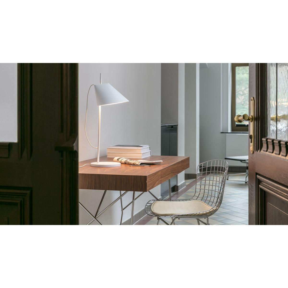 Stine Gam and Enrico Fratesi, who make up Gam. Fratesi, the most exciting design duo of the moment, designed a lamp called Yuh, a tribute to Louis Poulsen's philosophy that design must shape light, and inspired by the classic virtues of Danish design. With an impressive knowledge of the history of design and inspired by Poul Henningsen's approach to lighting and Arne Jacobsen's geometric shapes, Gam Fratesi pays homage to these true legends by giving the new Yuh lamp a characteristic playful aesthetic touch. "We were greatly inspired by Arne Jacobsen's AJ lamp. Its geometry is particularly striking. It’s inclined, but its lampshade is designed so that there is always a part aligned with the ground. It's extremely sculptural, but also very geometric", says Stine Gam. ''It's an architectural element", adds Enrico Fratesi. One of the essential features of the lamp is its great flexibility. A mechanical system offers great freedom of movement so that the light can always be adjusted to the ideal position in the workplace, in a living room, etc. The diffuser turns, stands up and lowers to illuminate and create an ambiance in the desired space: the lamp is designed around you. The lampshade is adjustable in height (it slides along its stem), rotating and tilting. The angle of the lampshade can be modified to optimise the distribution of light. The narrow aperture on the top of the lampshade ensures soft ambient upward lighting. The lamp provides direct downlighting without dazzling. "Our biggest challenge was to design a lamp that could be oriented in several directions. We worked with three different types of movement on the axis: tilt, rotation, and vertical movement. That complicated things a lot It was a real challenge, but at Louis Poulsen, there was a fantastic team of engineers with whom we worked very well", says Enrico Fratesi. "Our desire to fit the diffuser on the base of the lamp comes from our admiration for the work of Poul Henningsen, and our preference for indirect light. We like not seeing the light source directly, and so not being dazzled by it. ", explains Stine Gam. The built-in LED technology offers quality lighting with gradual variation from 15 to 100%. Timer function to turn off the light automatically after a certain time, 3-position switch off / 4 hours / 8 hours. Function that lets you configure a fixed lighting level when the lamp is connected to the mains. A button located at the top of the foot serves as a switch and dimmer.