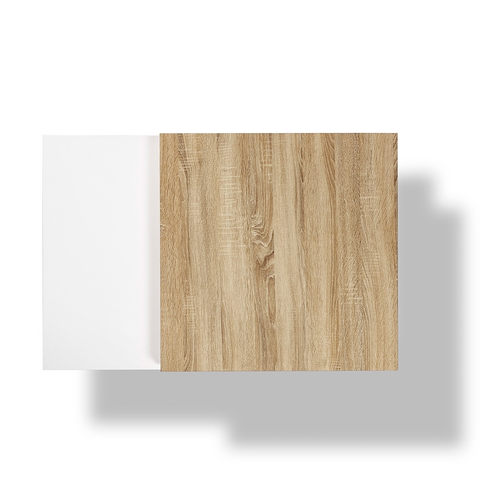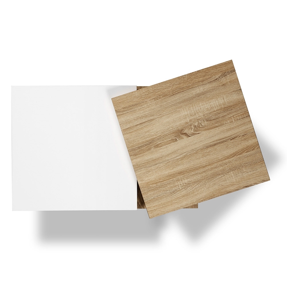 Not only practical in design but stylish, the Yuki Coffee Table with Extending Sections would make a wonderful addition to any home. Manufactured from MDF with a white and oak veneer finish, this gorgeous table will inject some Scandinavian style into your living room. A great space saver, with two movable sections, it's ideal when entertaining! Simply pull it out for all those nibbles, then when the fun and games are over just push it closed again - ideal.