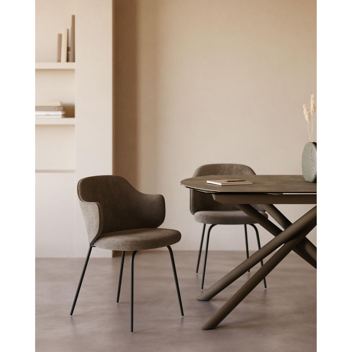 Yunia chair in brown with steel legs in a painted black finish FR
