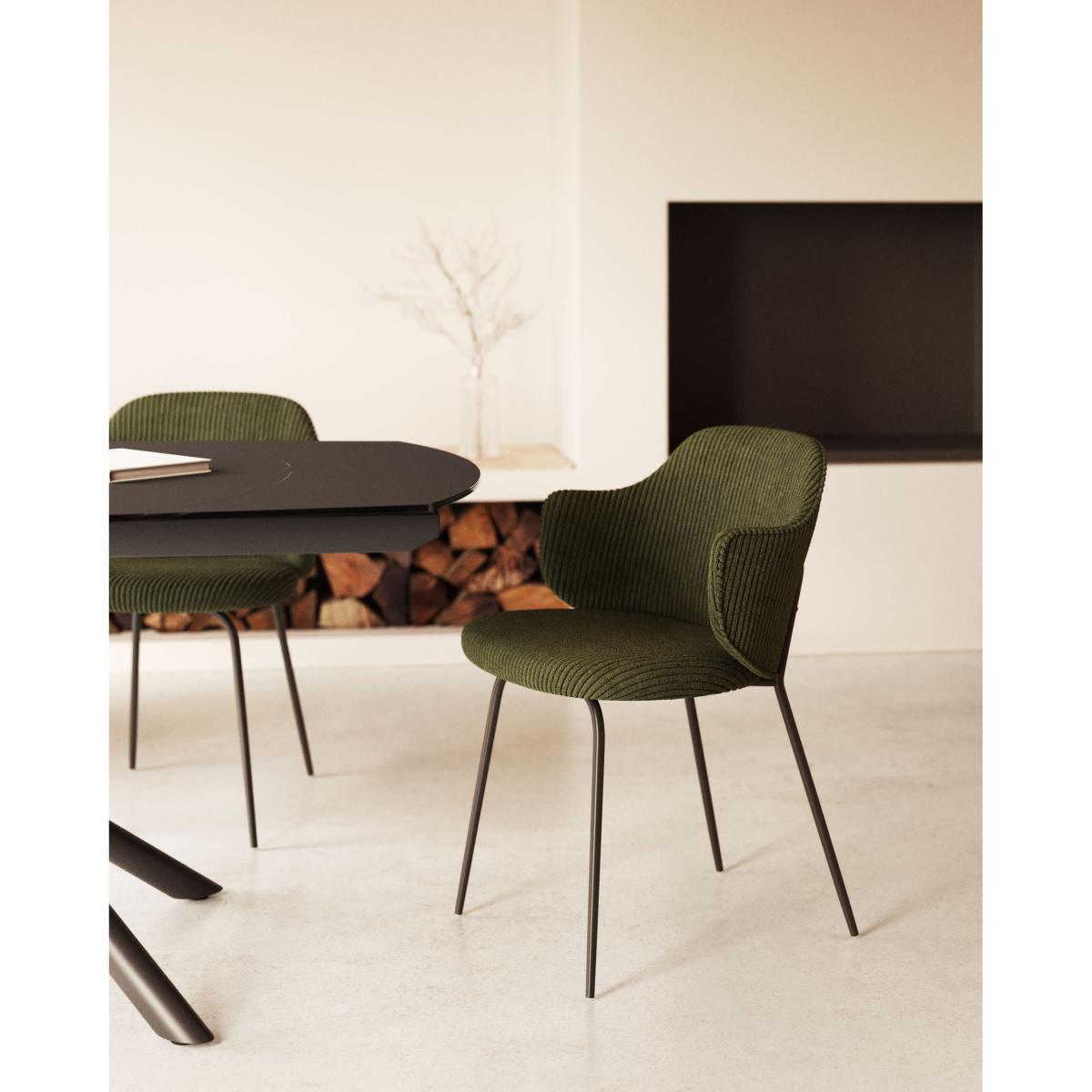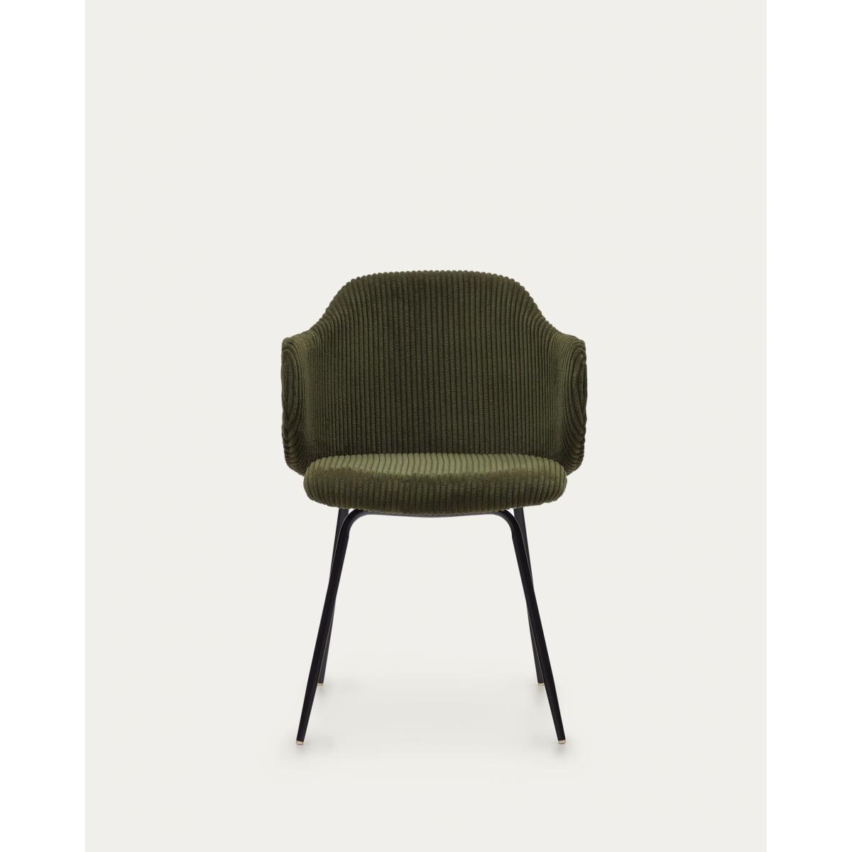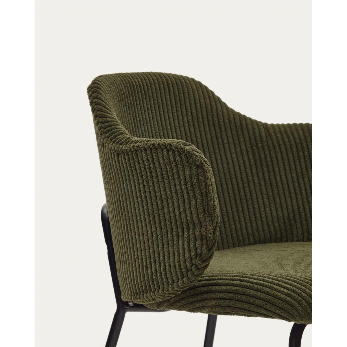 Yunia chair in green wide seam corduroy with steel legs in a painted black finish FR