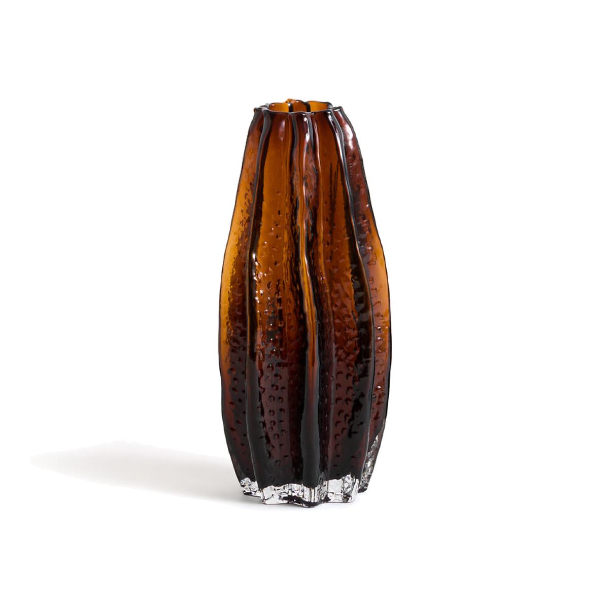 Yuvo 29.5cm High Textured Amber Glass Vase
