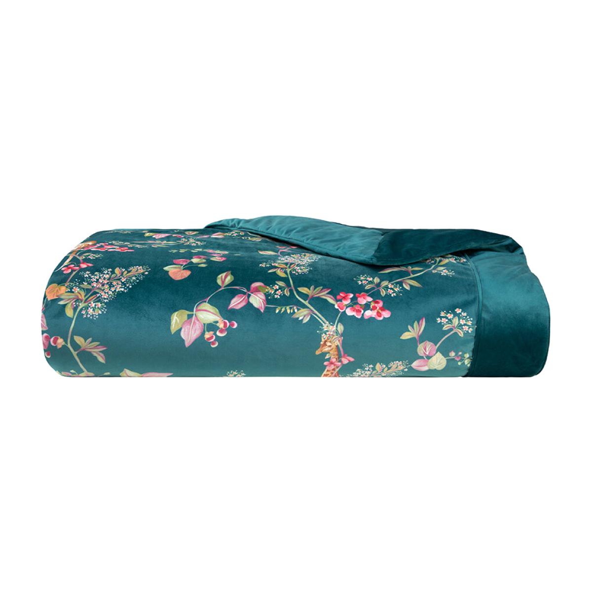 Turn your bedroom into a beautiful boudoir with this Un Jour Une Histoire bedspread from Yves Delorme. Made in Portugal from 100% organic cotton, is adorned with a beautifully intricate floral design on a rich teal background. Style with the rest of the collection to complete the look. Key features: * Material: 100% organic cotton * Dimensions: 150x220cm * Rich teal colourway * Floral design * Made in Portugal * Dry clean only
