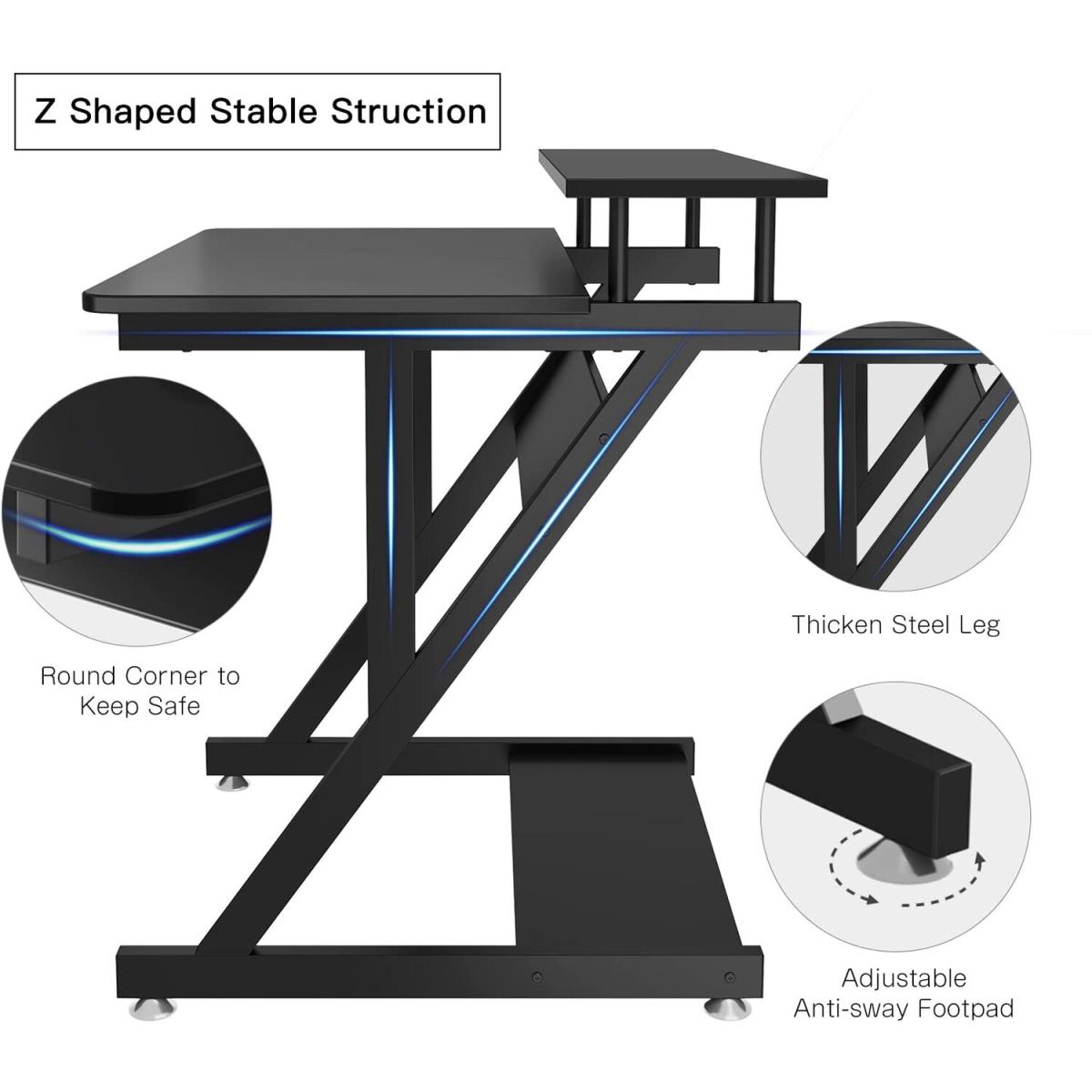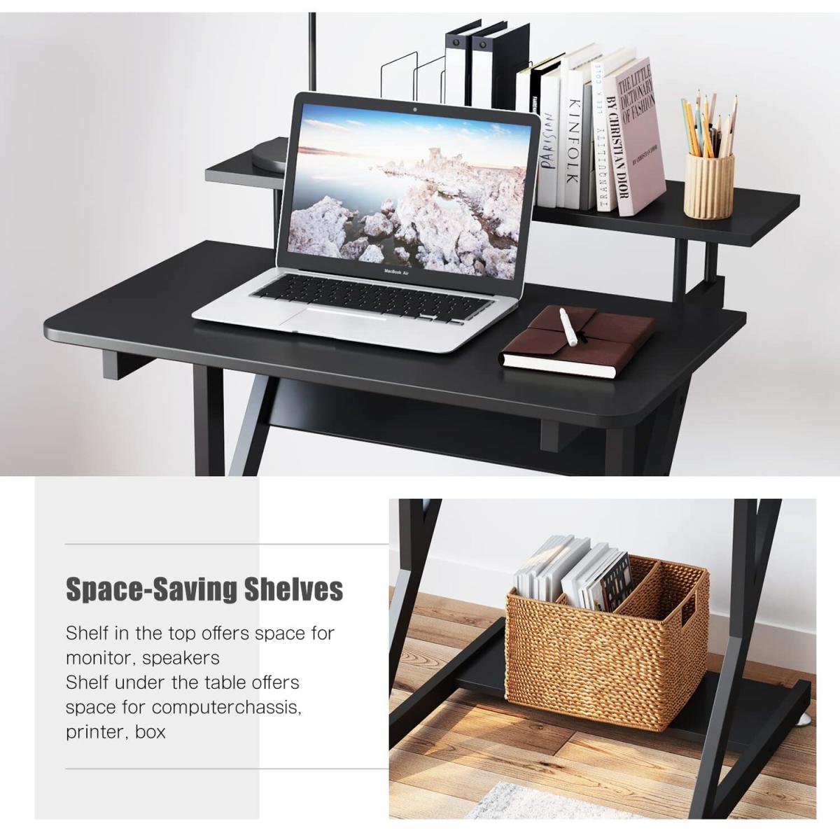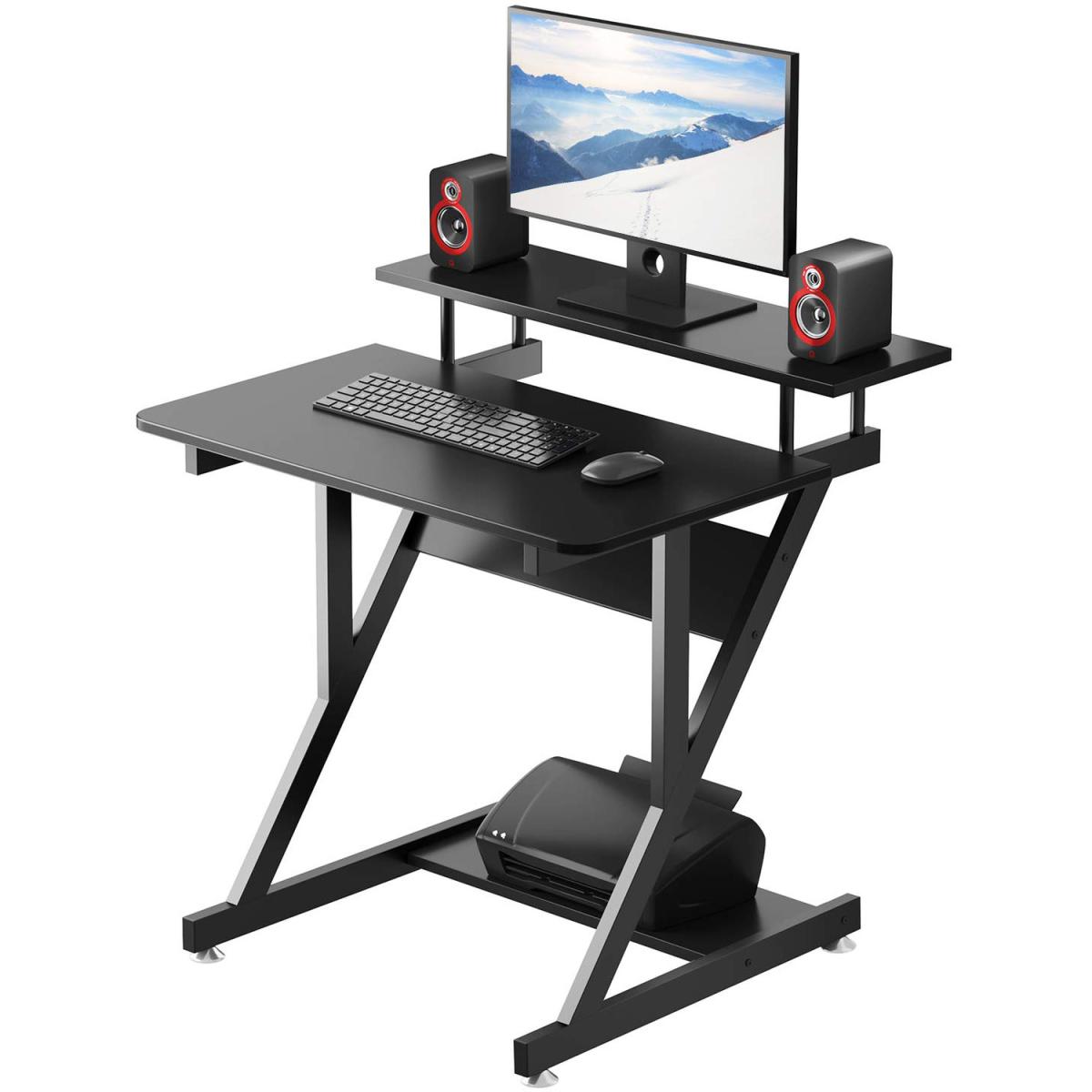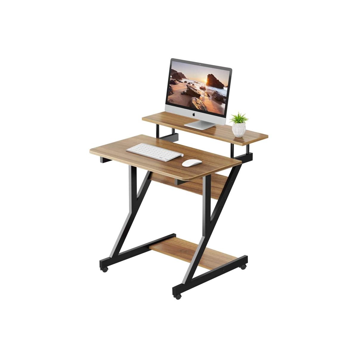 Z-Shaped Mobile Computer Desk with Monitor Shelf - walnut