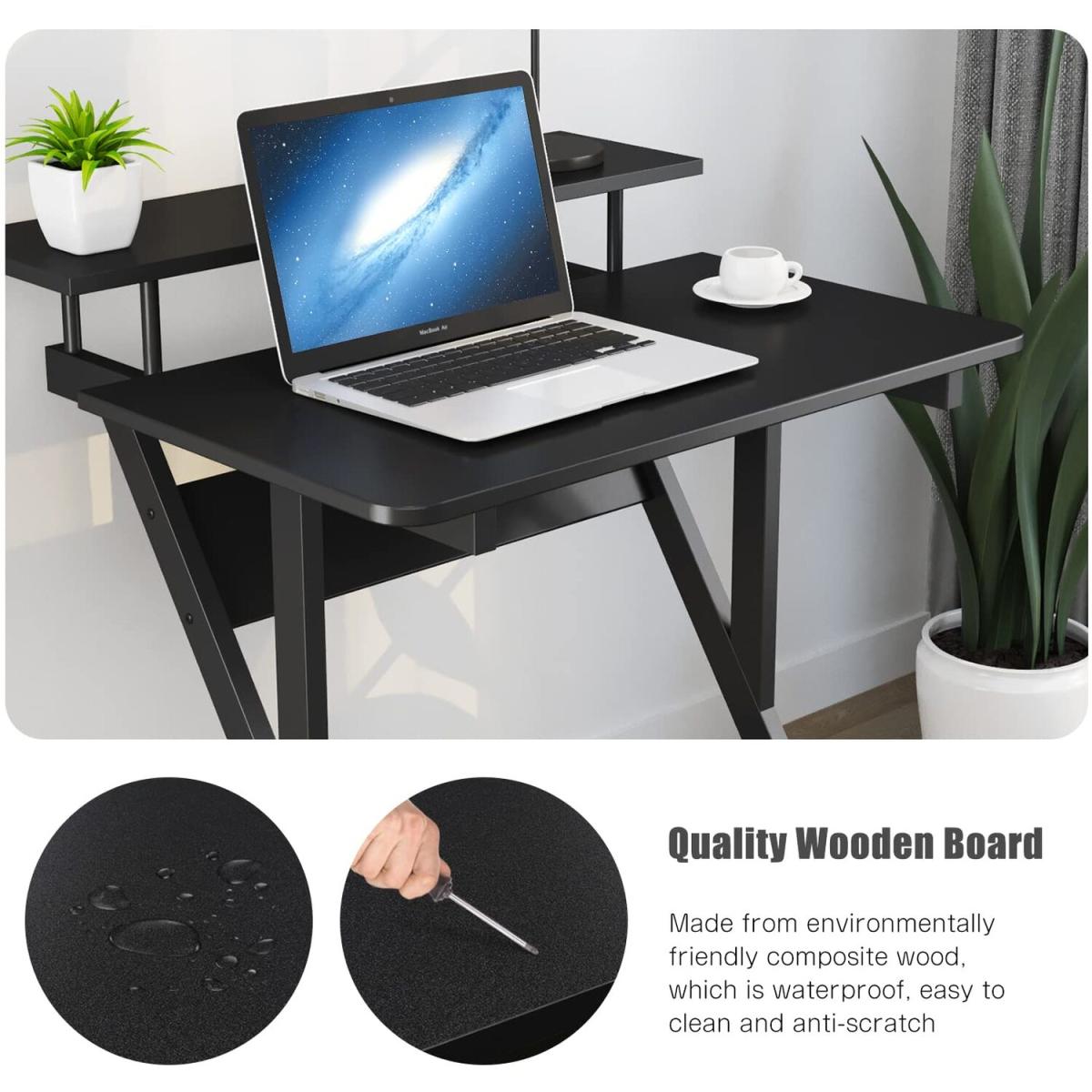 This computer desk is constructed of high-quality wood & solid steel frames to keep your desk sturdy and stable for years. Features a space-saving design with ample space for storing your books, plants or a printer, etc. while the smooth top surface provides a perfect platform for your laptop and accessories. This computer desk is easy to assemble for most people with the provided instructions, but if you have questions or need any help. Please feel free to contact us.