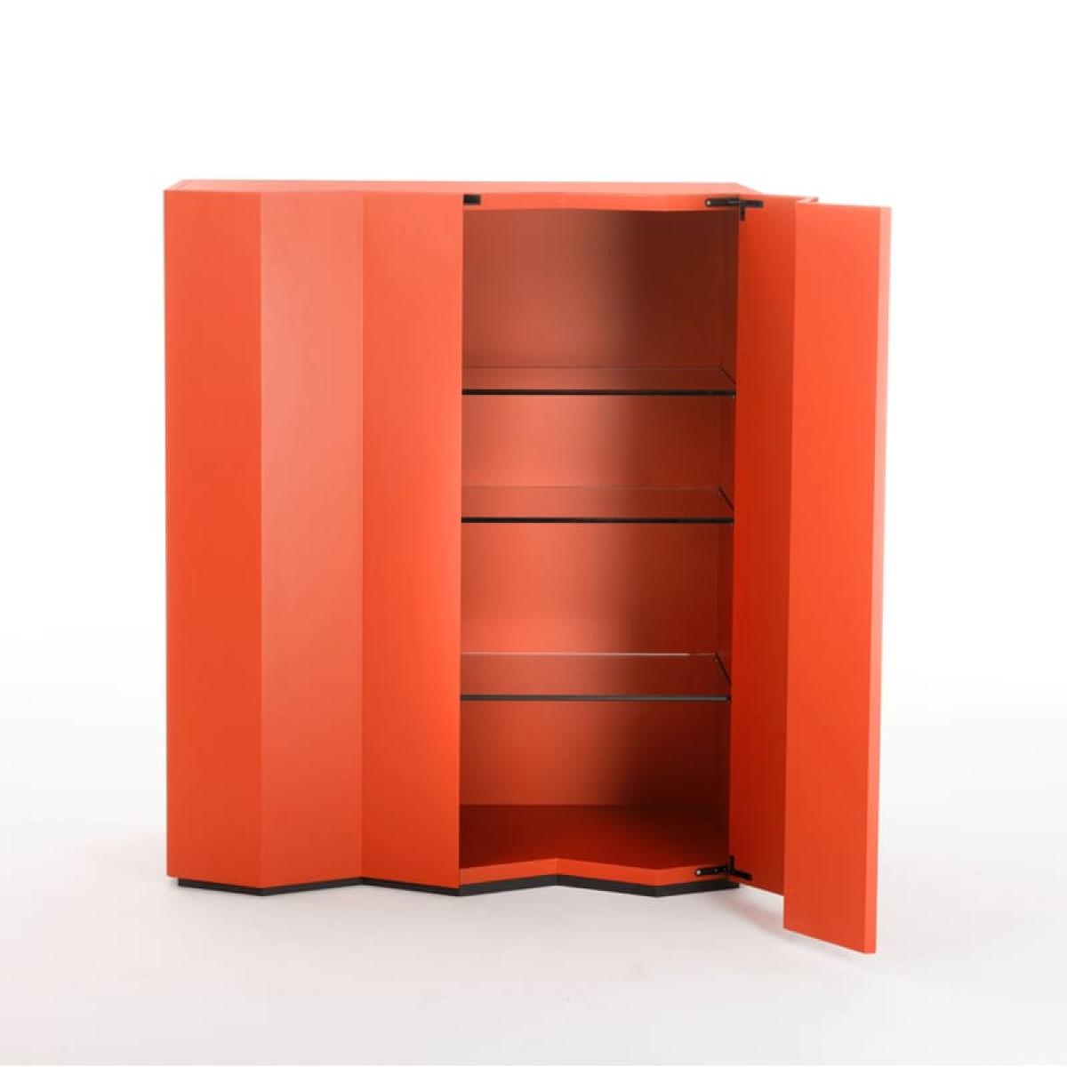Toy of reflections... The result of a collaboration between Muller Van Severen and Zanotta, Z24 is a dresser with a playful, original and contemporary shape. The magic of the Z24 Dresser lies in the zigzag shape of its front. A harmonious repetition of triangular doors, meticulously arranged to create a captivating rhythmic landscape. This intricate design not only adds visual interest, but also facilitates a fascinating Toy of light and shadow, giving the cabinet a sense of dynamic depth and dimension. As light dances across the surface, projecting intricate patterns that seem to bring life to the otherwise static facade, the Z24 cabinet transforms its surrounding space.