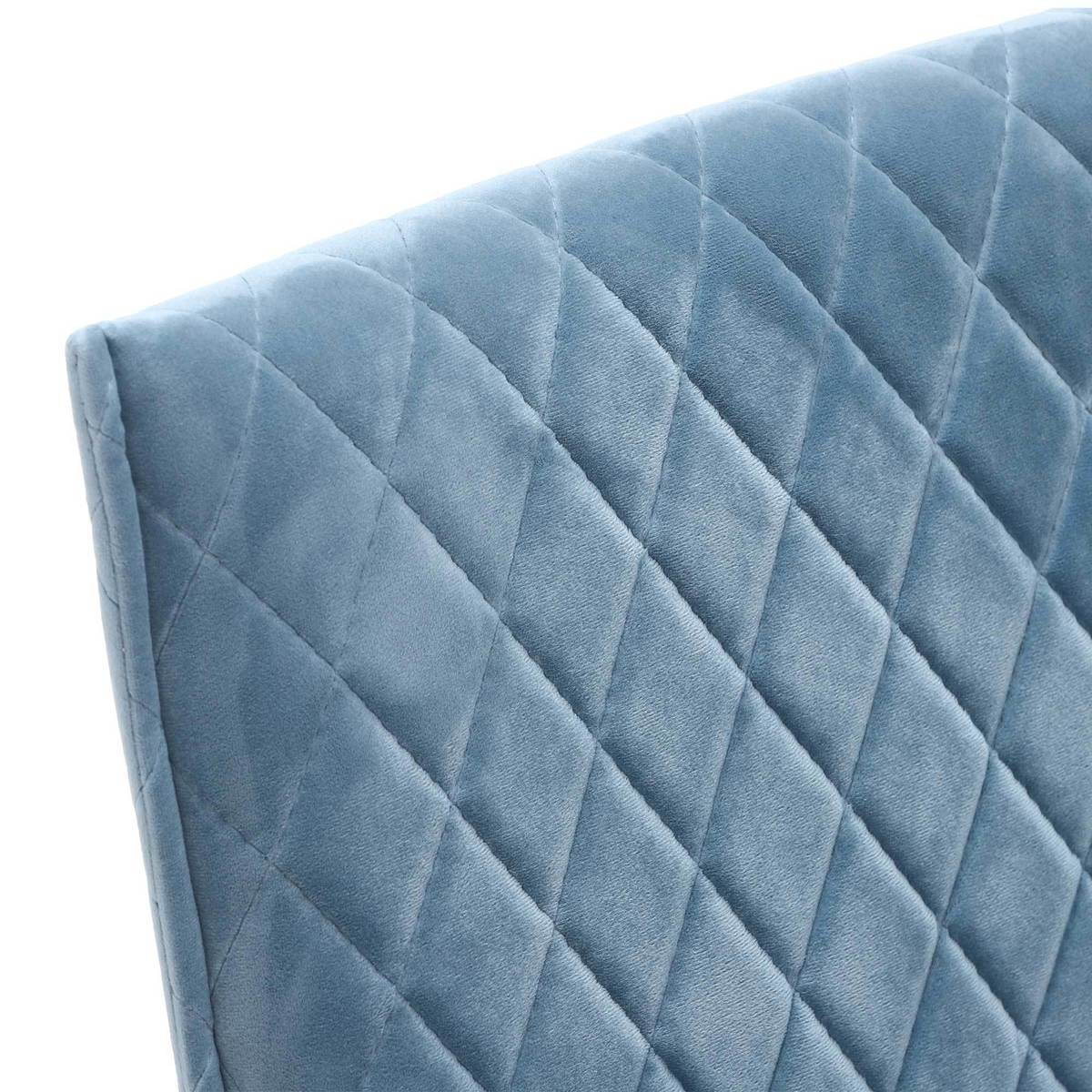 Featuring quilted powder blue velvet the Zabian dining chair is bang on trend. The ideal combination of comfort and style allowing you to enjoy time spent around the dining table with friends and family. The contemporary legs and luxurious velvet work great with a variety of interior styles making this a versatile and stylish addition to your home.