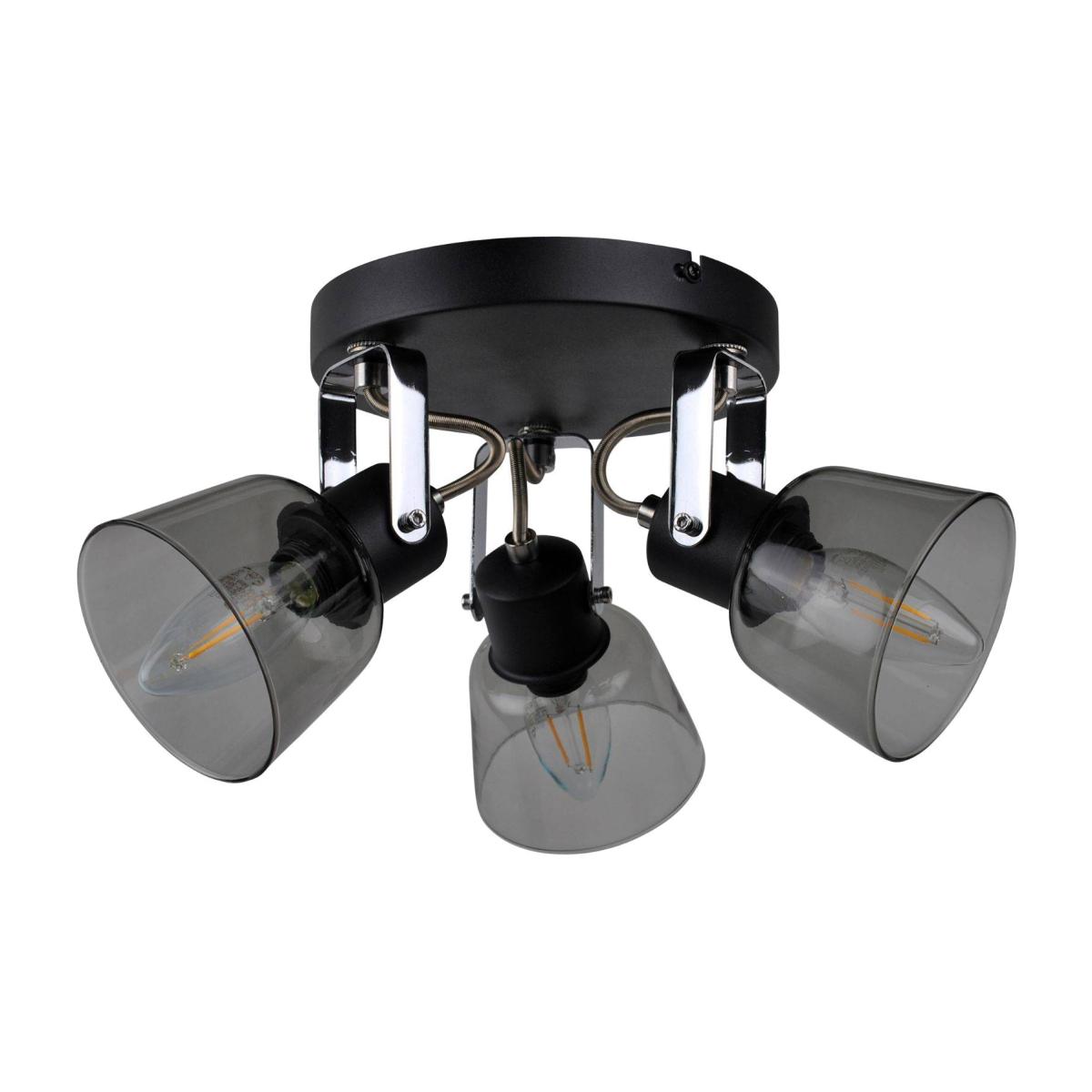 Zach Black 3 light Spotlight with Glass Shade The elegant Zach spotling has a stunning black finish and boasts a smoked glass shade to add character to any room. we recommend our E14 warm light LED bulbs for a soft glow or our E14 daylight LED bulbs for a crisp bright look Zach Black 3 light Spotlight with Glass Shade The elegant Zach spotling has a stunning black finish and boasts a smoked glass shade to add character to any room. we recommend our E14 warm light LED bulbs for a soft glow or our E14 daylight LED bulbs for a crisp bright look