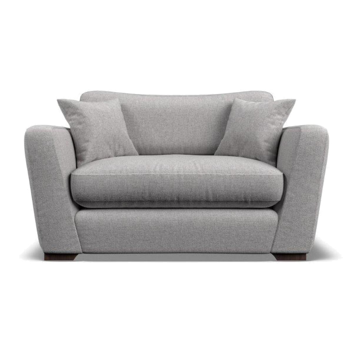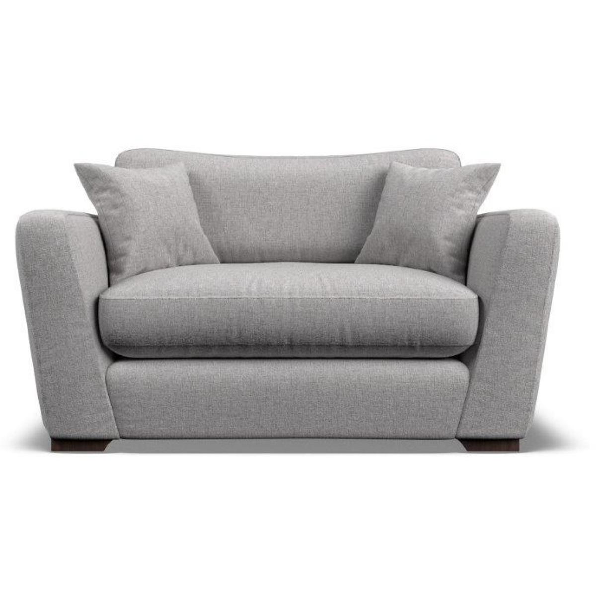 This Zadie Cuddler Chair with its spacious and cozy design, is perfect for snuggling up with a loved one or enjoying a quiet moment alone. The integrity of all key joints is ensured through a robust combination of gluing, screwing, and stapling. The back is supported by tension-woven elastic webbing, which is then layered with foam for maximum comfort. The seat incorporates a full zig-zag sprung platform, enhancing flexibility and ensuring durability, features a frame constructed from seasonal hardwood, meticulously chosen from sources that are both traceable and sustainable, As for the seat cushions, you have two inviting options to choose from: the Fibre cushion, which is cloud-like and squishy, offering a soft sit that beckons you to sink in and relax; or the Encore Foam cushion, which features a specially contoured foam surround for a cloud-like sitting experience, paired with the bounce and resilience of a supportive high-density foam core. To add to the comfort, the scatters are filled with 100% white duck feather. Completing the look, the feet are available in a choice of finishes, either the rich tone of American Walnut or the rustic charm of Weathered Oak allowing you to personalize your piece to your taste and interior design. Available in a range of fabrics. Hardwood Frame Tension Woven Elastic Webbing Back Support Full Zig Zag Sprung Seat Platform. Dimensions: Height: 83cm Width: 142cm Depth: 104cm Seat Height 45cm All screens vary in colour reproduction and whilst every effort has been made to display the colour as accurately as possible it is for guidance only