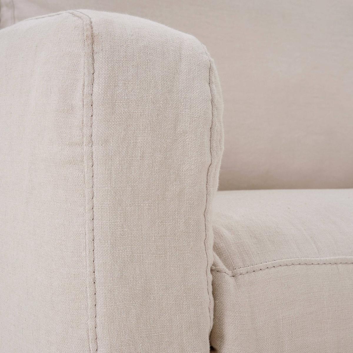 Get the best seat in the house with our mid-century 2 seater sofa, upholstered in a quality 100% beige linen fabric with curved arms and spacious seating space to encase you in comfort, add a good book or movie. Comes with 2 detachable back cushions, family-friendly with washable seat cushion covers for any spills or accidents. Complies with UK safety regulations - verified certificate of flame retardant testing.