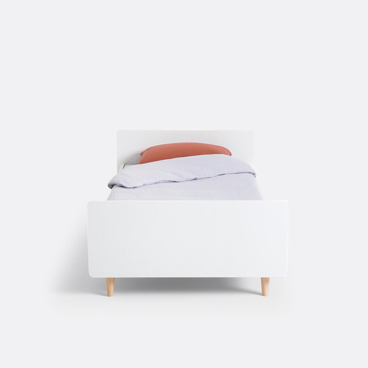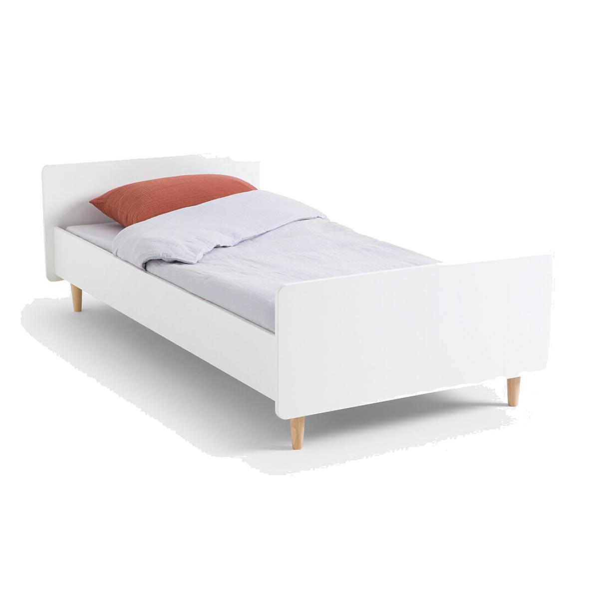 The Zag child's bed, with bedspring. The retro style of this shelving unit is very on-trend. Product Details • In lacquered MDF, AC finish (water-based paint without solvent) • Solid rubberwood legs, AC varnish finish • Includes slatted base • Sleeping area 90 x 190cm. Dimensions • Width: 101cm • Length: 195cm • Height: 60cm. Delivery: • Assembly required. Available for home delivery. Note! Please check that all access points are large enough to accommodate your delivery (doors, stairs, lifts).Dimensions and weight of parcel2 parcels • 1 of 2 : L111 x H54 x D5.8 cm - 13.2 kg • 2 of 2 :L201.5 x H53.4 x D7.2 cm - 28 kg