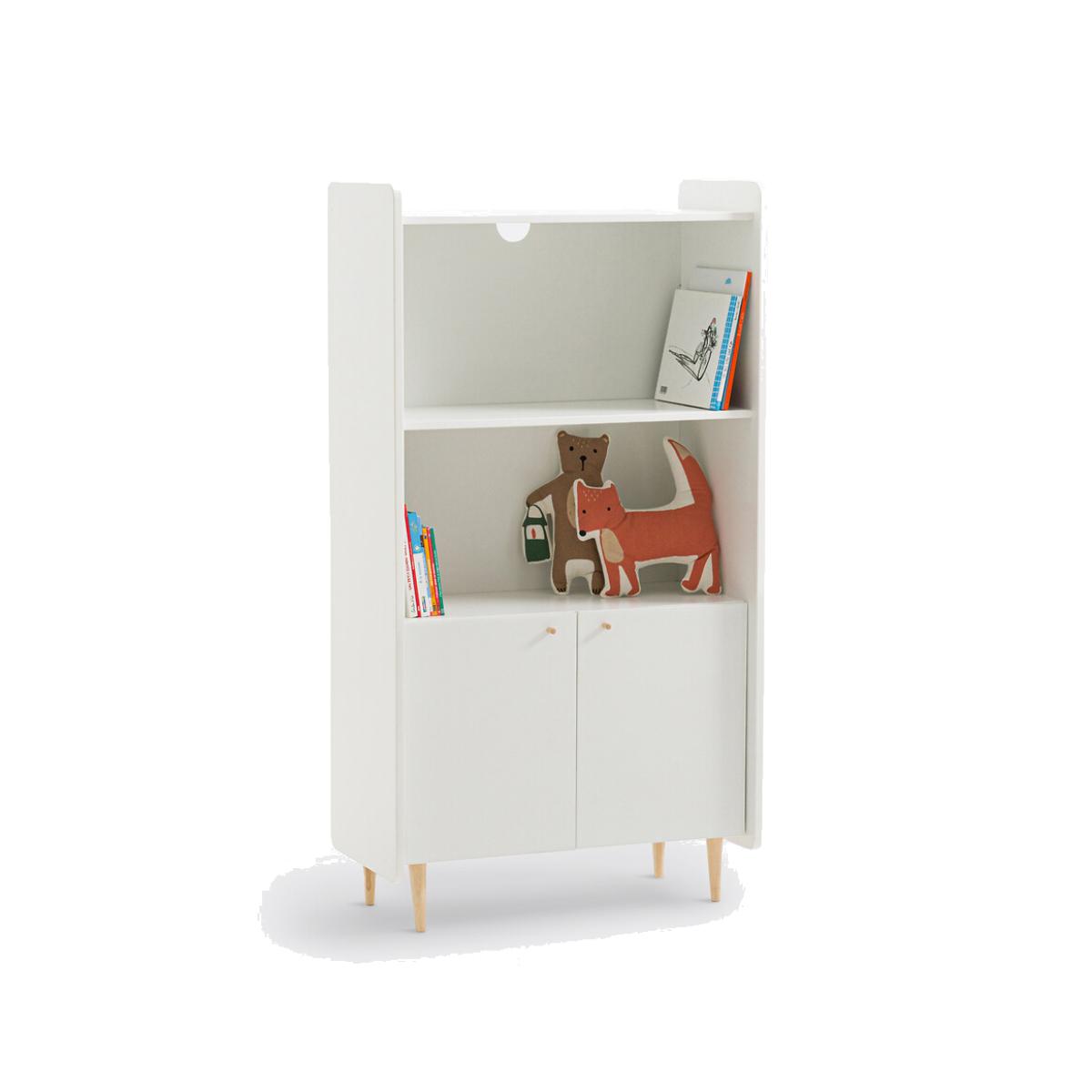 The Zag child's shelving unit. The retro style of this shelving unit is very on-trend. Its practical design allows you to store toys, books...Product Details • 2 shelves + 2 doors • In lacquered MDF with AC finish (water-based paint without solvents) • Solid rubberwood legs and handlesDimensions. Overall • Width 75.7cm • Height 120.4cm • Depth 36.7cm. Usable dimensions • Top shelf:L72.1 x H36.2 x D32.2cm • Bottom shelf: L72.1 x H35.6 x D32.2cm • Cupboard:L72.1 x H42.6 x D30cmDelivery:. This product is sold for self-assembly. It will be delivered to your door. Note! Please check that all access points are large enough to accommodate your delivery (doors, stairs, lifts).Dimensions and weight of parcel1 parcel • L139.2 x H80.4 x D7.5cm. Weight 32kg