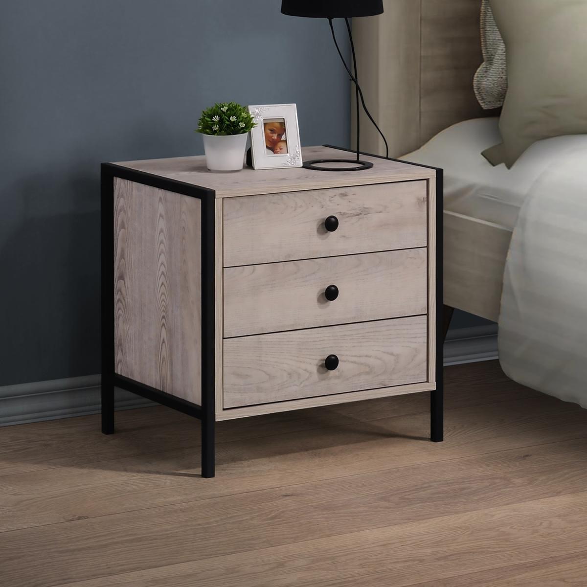 GREAT STORAGE - Our Zahra Bedside Table features 3 Drawers which will provide ample of space to store your stuff & will work wonderfully with the majority of interior designs. As a cabinet, the side table with drawers can store many daily objects. MEASURES - H 53.6cm x W 53.8cm x D 40cm. This bedside table comes with Metal Outer Frames & Legs, which provides a Smooth Opening & comes with Cut cut-out handle Design. VERSATILE - This beautiful 3 Drawer Table is extremely versatile and can be used both as a bedside table in any bedroom as well as lamp table in the living room. Finished in stunning Grey with a contrasting oak top, this piece of furniture is ideal for any home. EASY TO ASSEMBLE - All parts are labelled or numbered as the clear instructions shown, which are all included in the package, you can easily assemble storage unit. MADE OF PARTICLE BOARD - This Bedside Table is Made of Particle Board, each item comes flat packed for self-assembly at home. Please note that due to lighting and different devices you might be using, the colour in the image may vary slightly from the actual colour of the product.